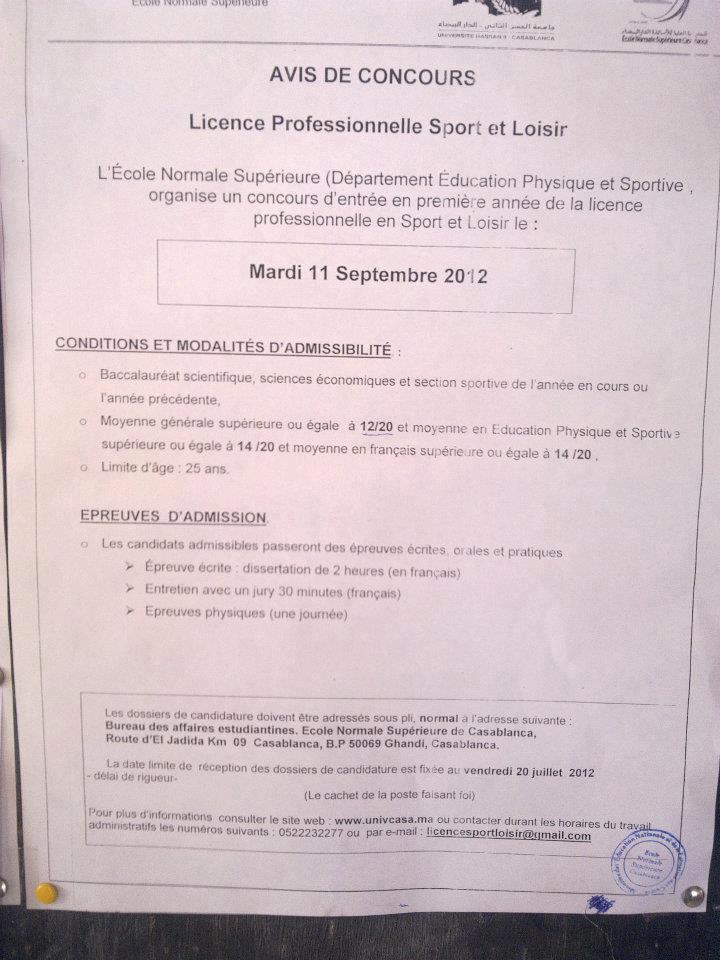 شروط المشاركة في مبارة الاجازة المهنية رياضة و ترفيه " Licence professionnelle en sport et loisir "