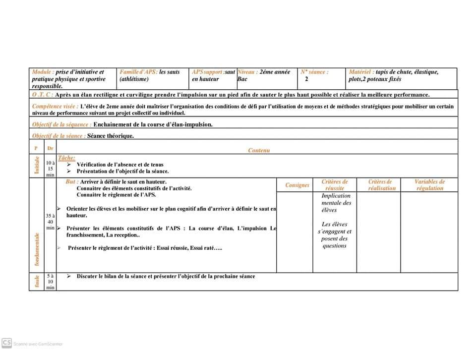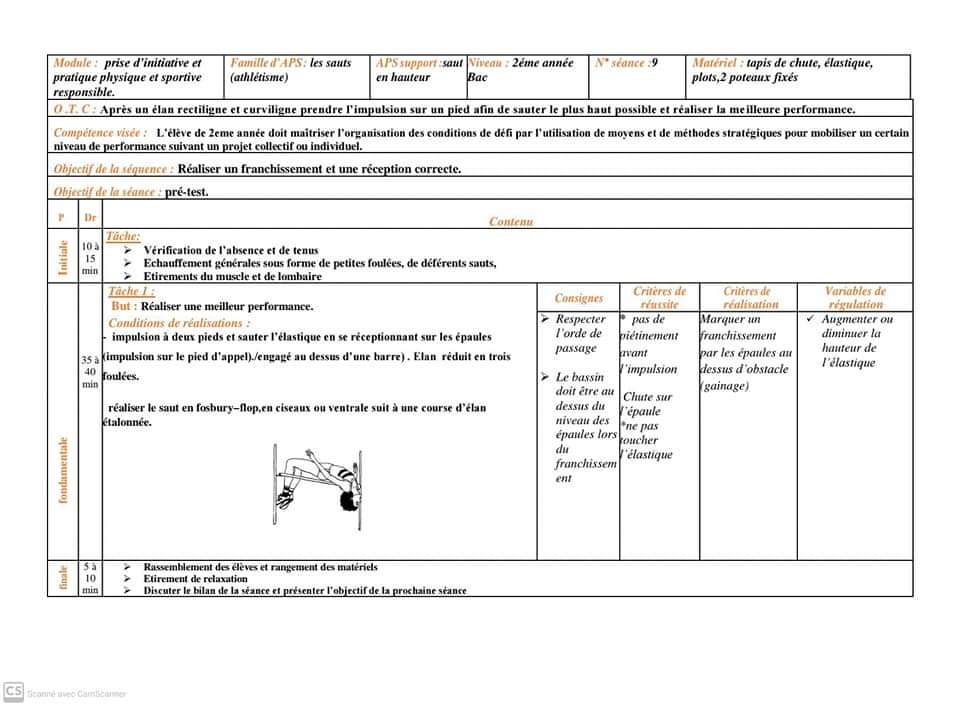 un cycle complet du saut en hauteur pour 2 BAC selon les nouvelles orientations pedagogiques 2007