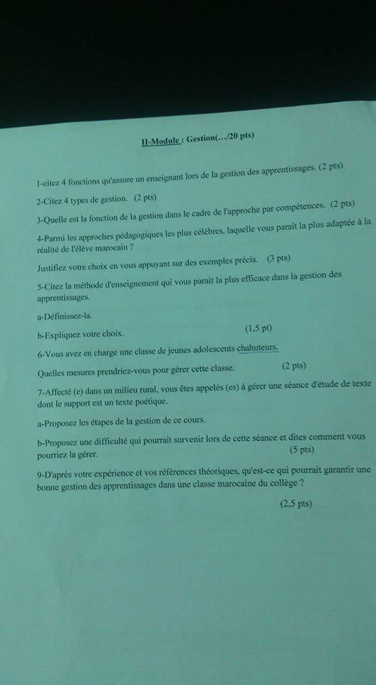 اللغة الفرنسية جهة طنجة تطوان الحسيمة الاختبارات الكتابية الخاصة بالتصديق على استيفاء مجزوءات التكوين الحضوري لفائدة الأساتذة الموظفين بموجب عقود فوج 2016