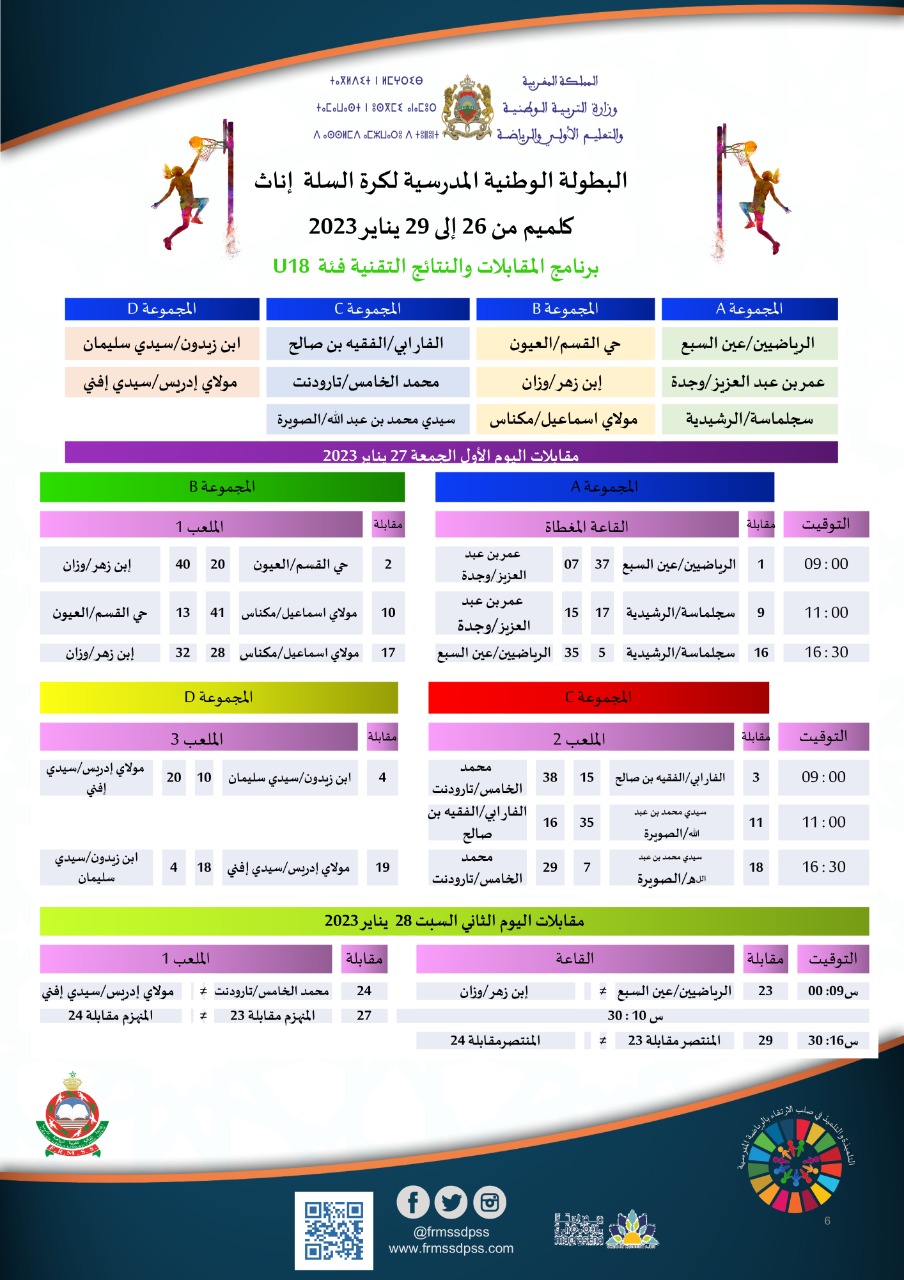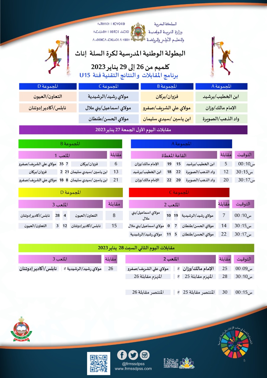 برنامج المقابلات والنتائج التقنية للفئة أقل من 15 و 18 سنة