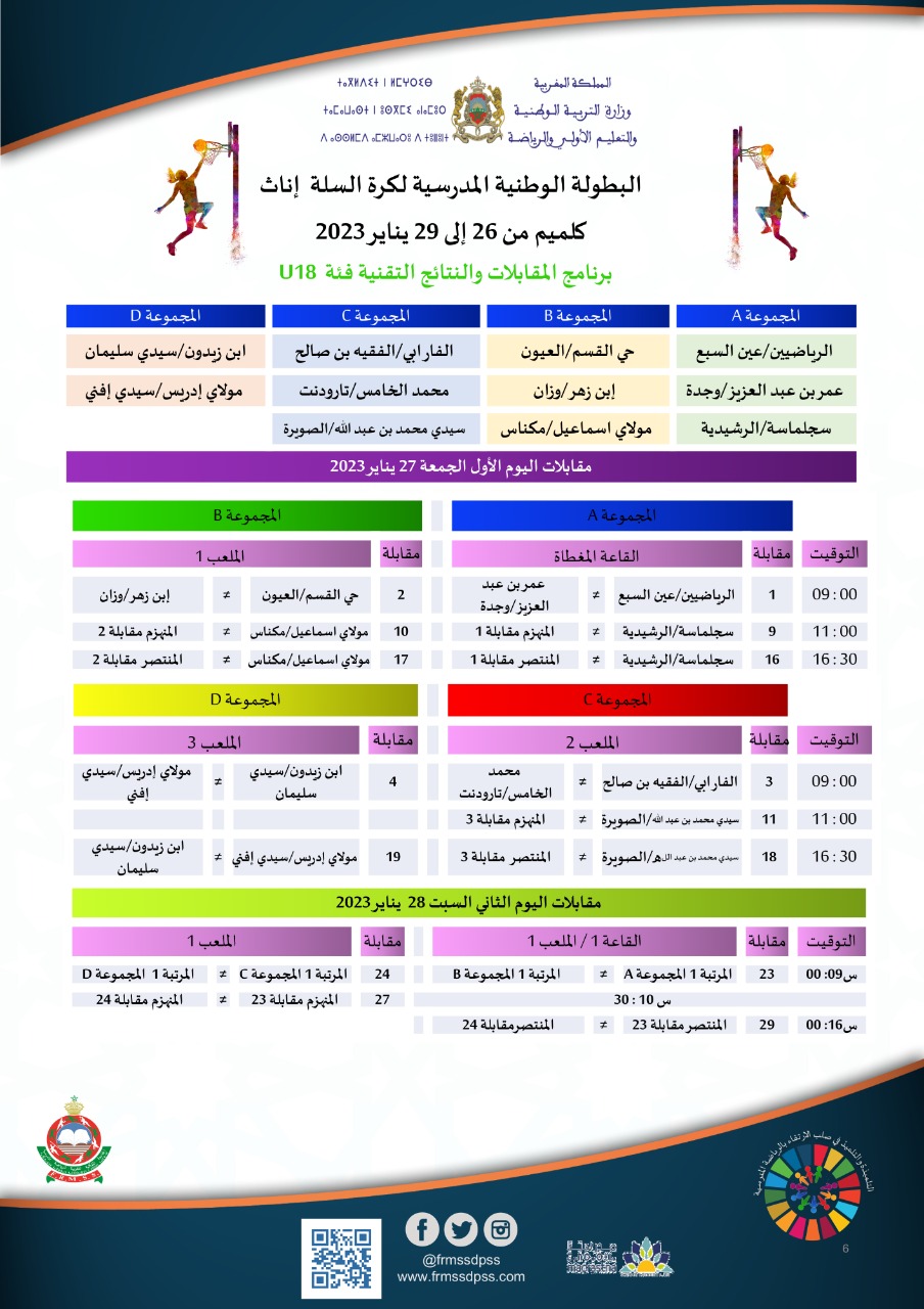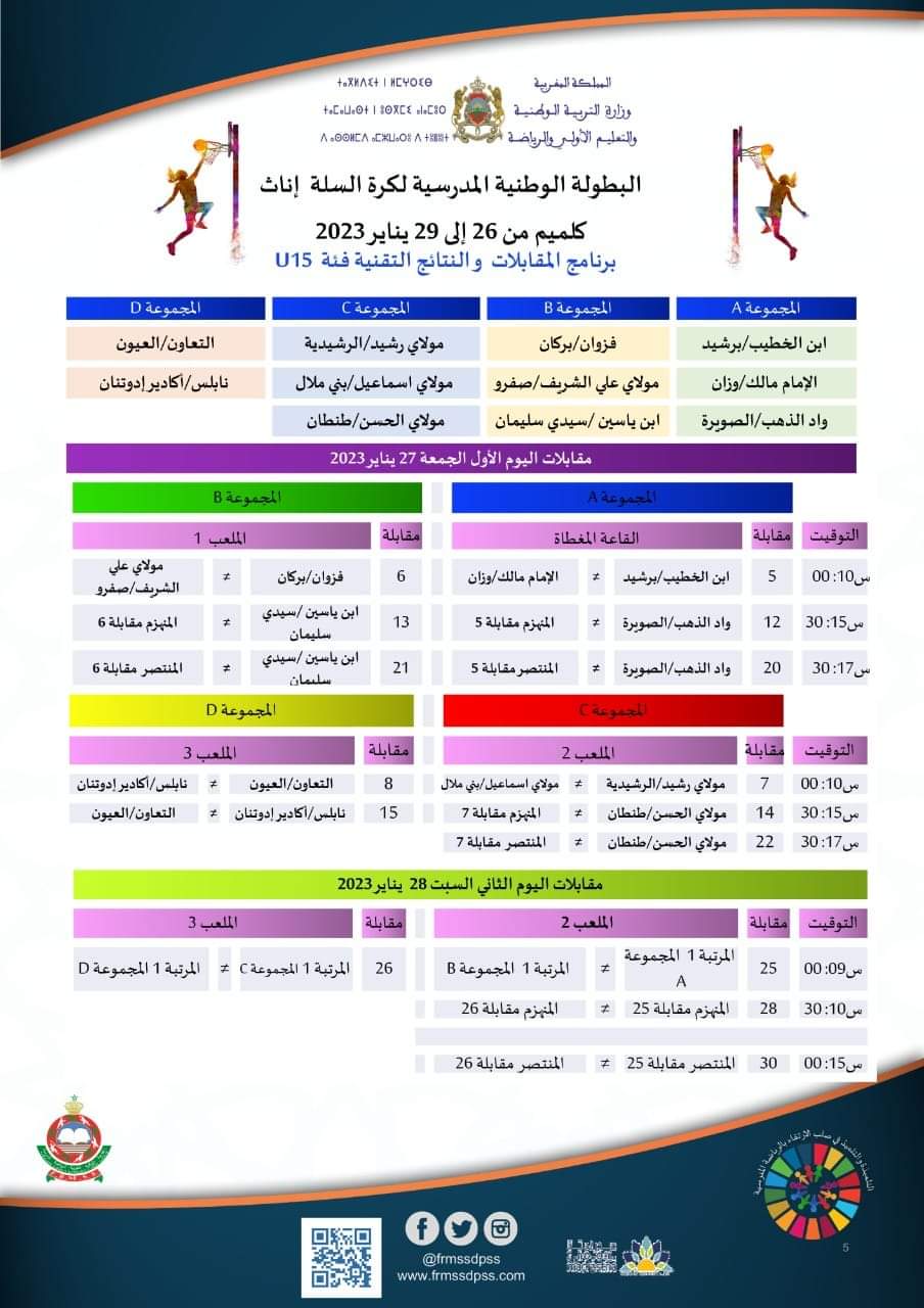 برنامج مقابلات البطولة الوطنية المدرسية لكرة السلة إناث u15 و u18🏀