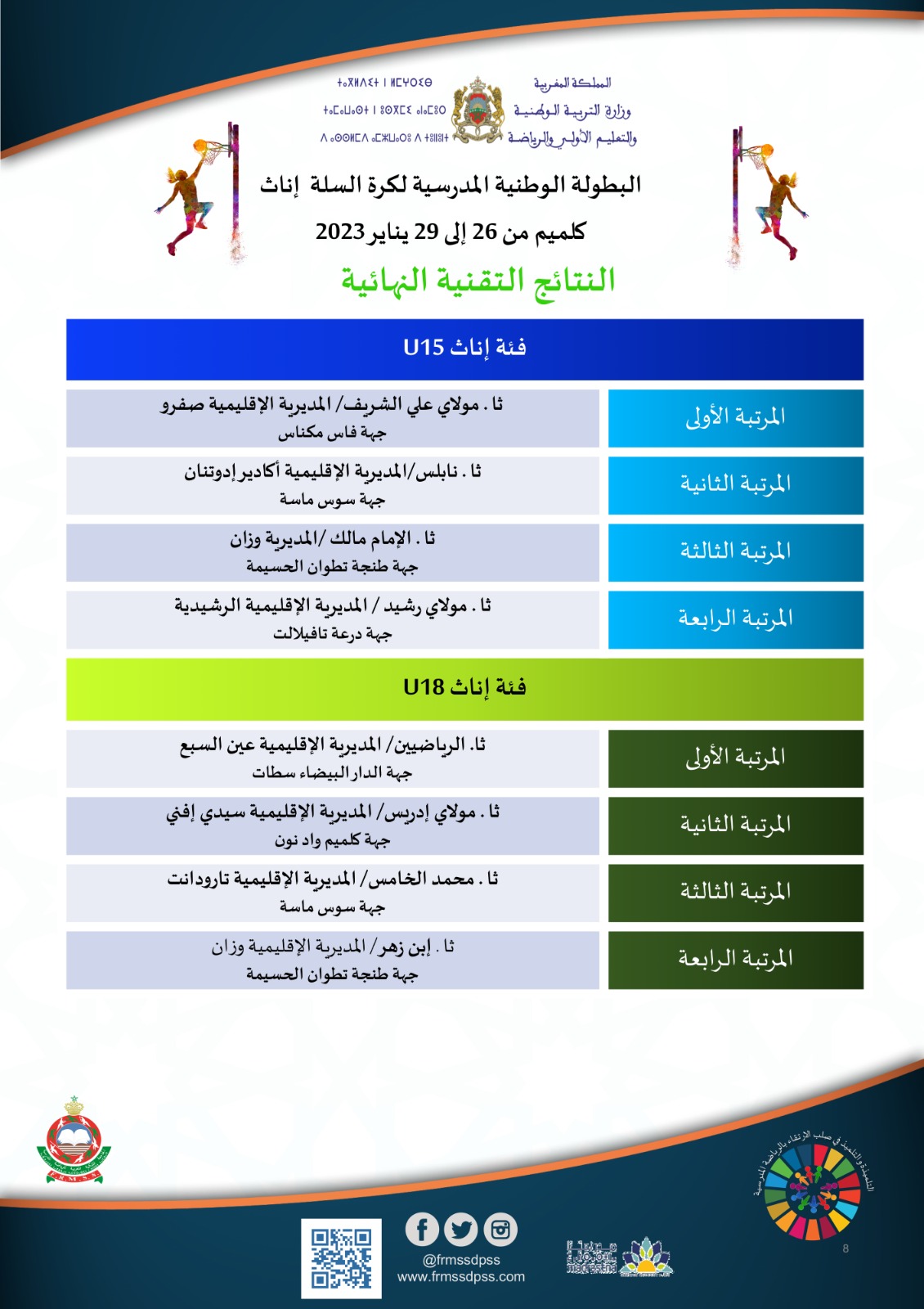 النتائج النهائية للبطولة الوطنية المدرسية لكرة السلة 5*5 اناث