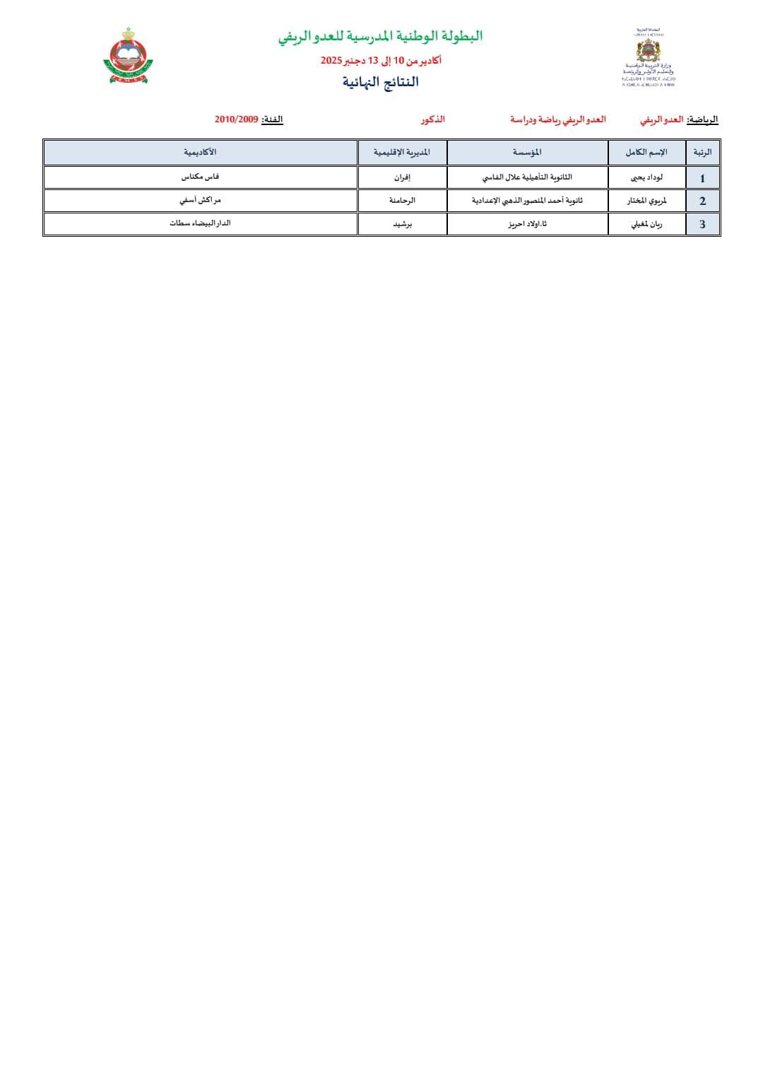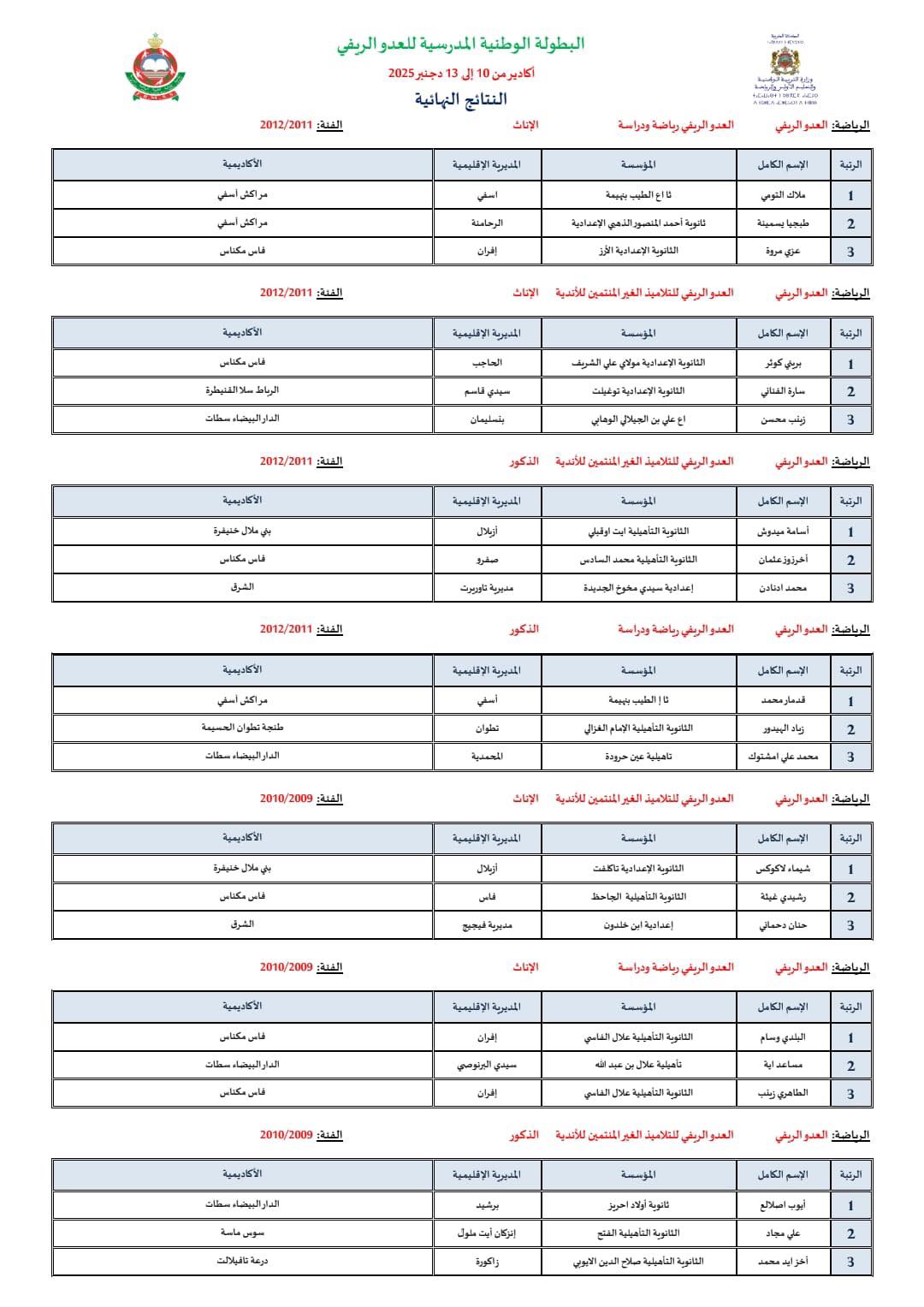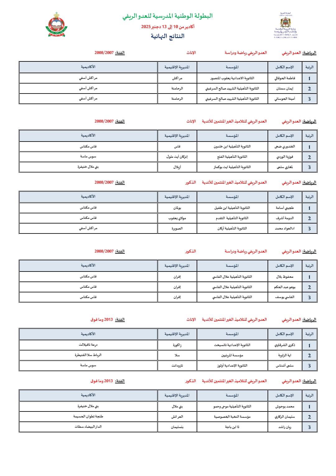 أسدلت مدينة أكادير، يوم الجمعة 12 دجنبر 2025، الستار على فعاليات البطولة الوطنية المدرسية للعدو الريفي برسم الموسم الدراسي 2025-2026