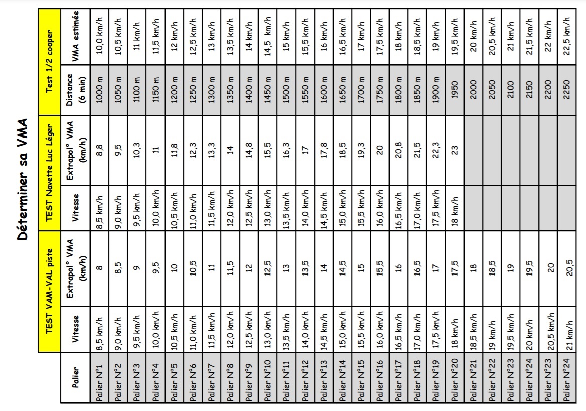 ( TEST Navette Luc Léger-Test 1/2 Cooper-TEST VAM-VAL piste)