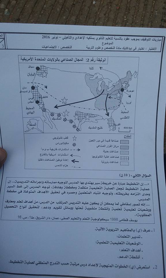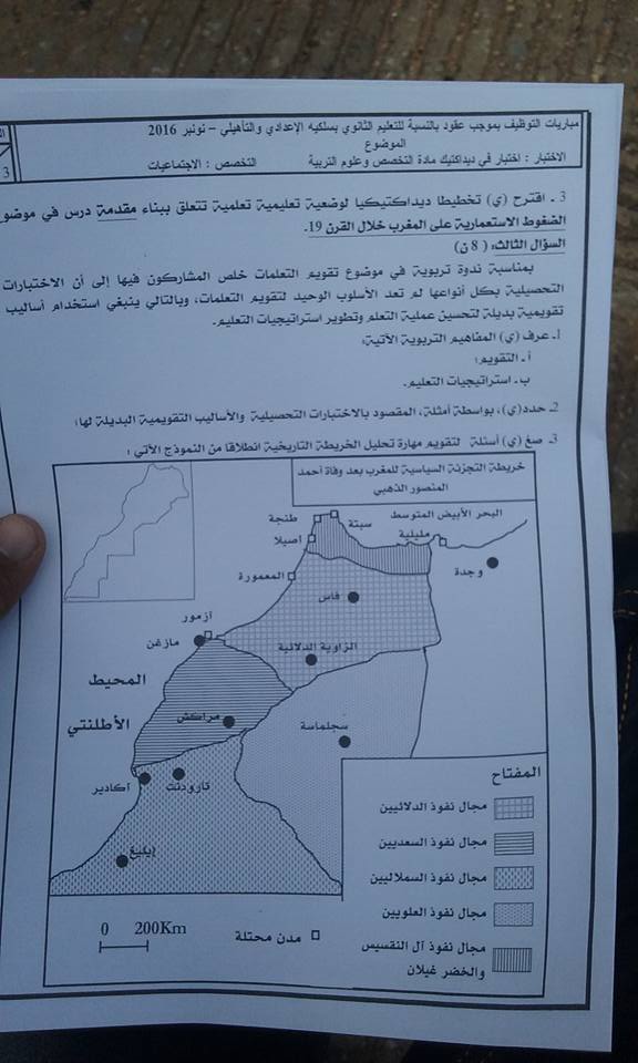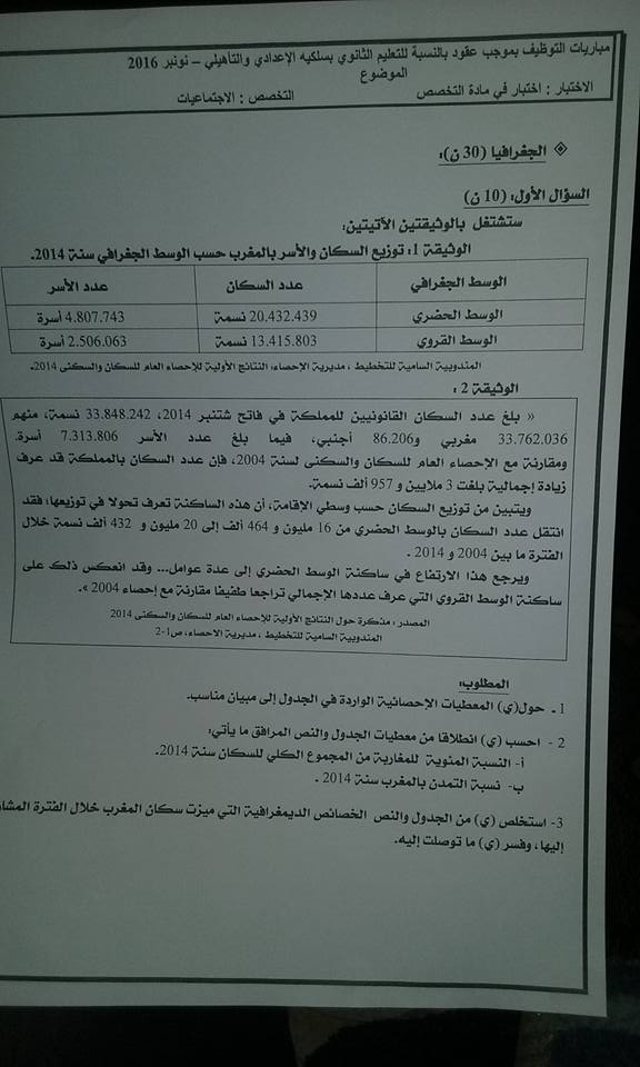 مباراة التوظيف بموجب عقود يونيو 2017 / الثانوي بسلكيه الاختبار الكتابي لمادة الاجتماعيات مع التصحيح الرسمي