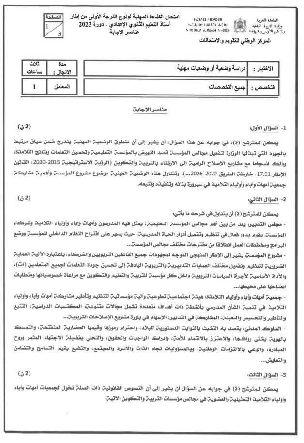 استعدادا للمباريات المهنية 19 (2025) : تصحيح وضعية مهنية 2023 (إعدادي وثانوي)