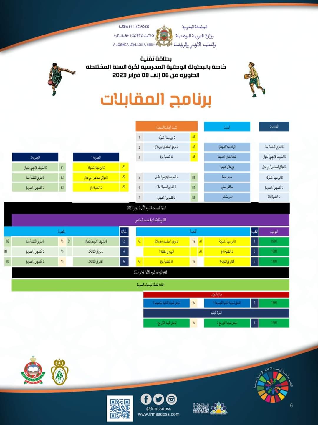البرنامج التقني لليوم الاول البطولة الوطنية المدرسية لكرة السلة المختلطة بمدينة الصويرة