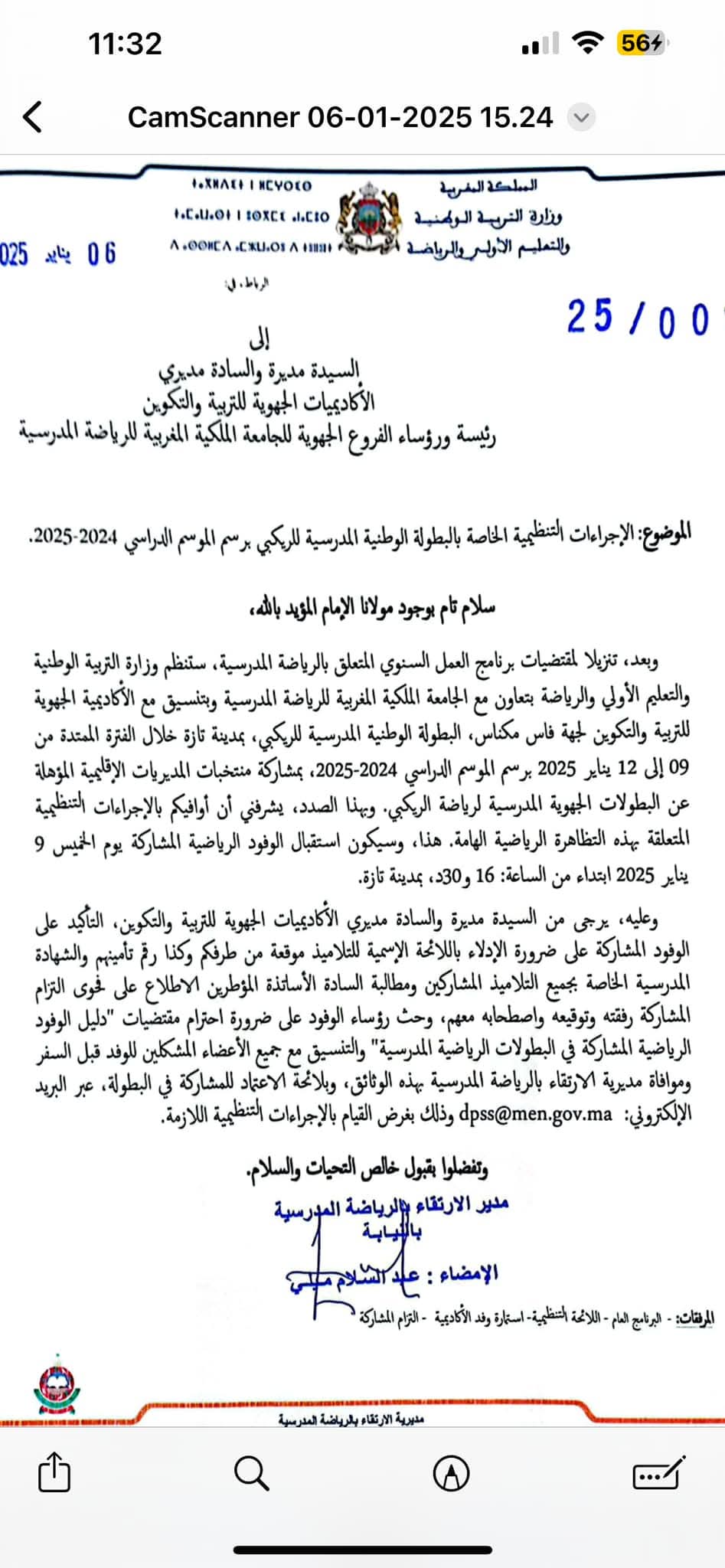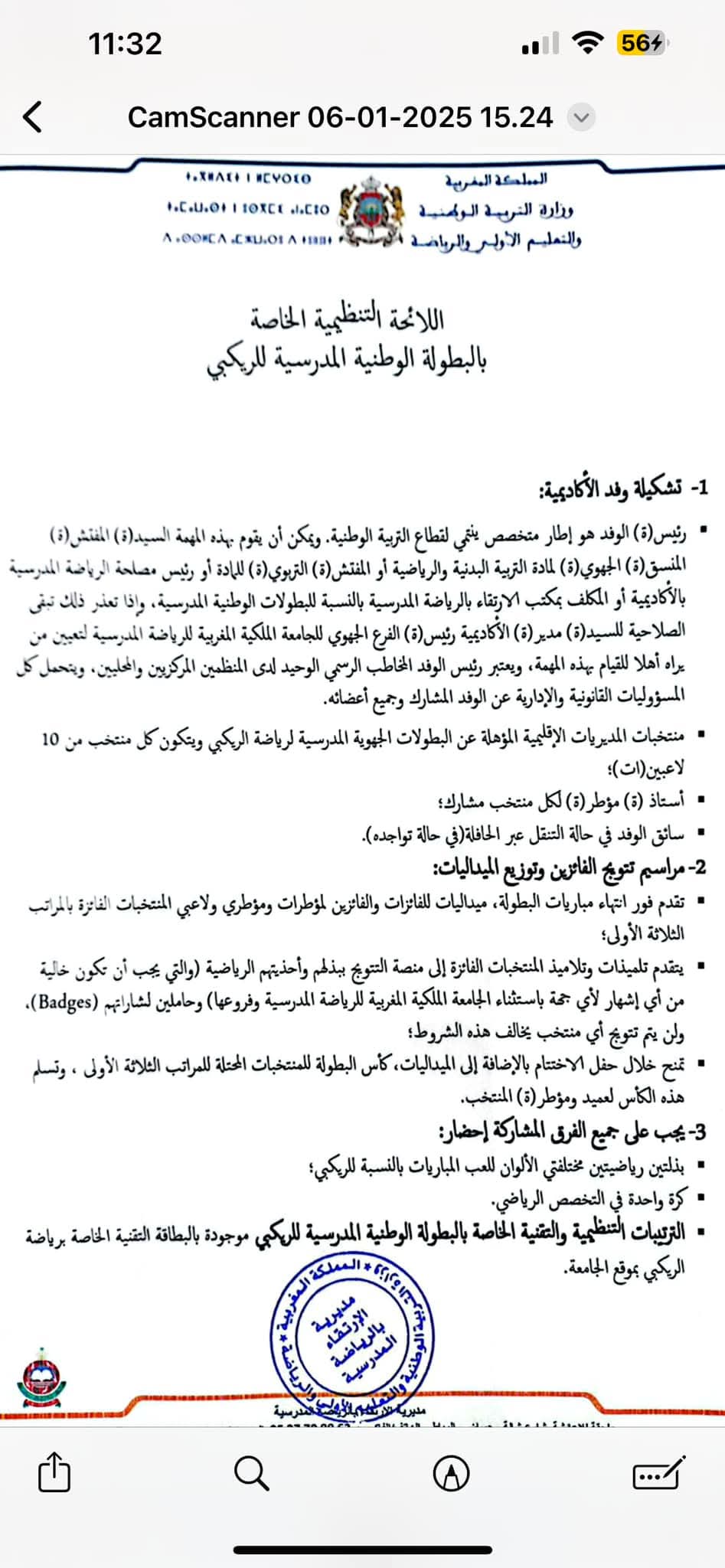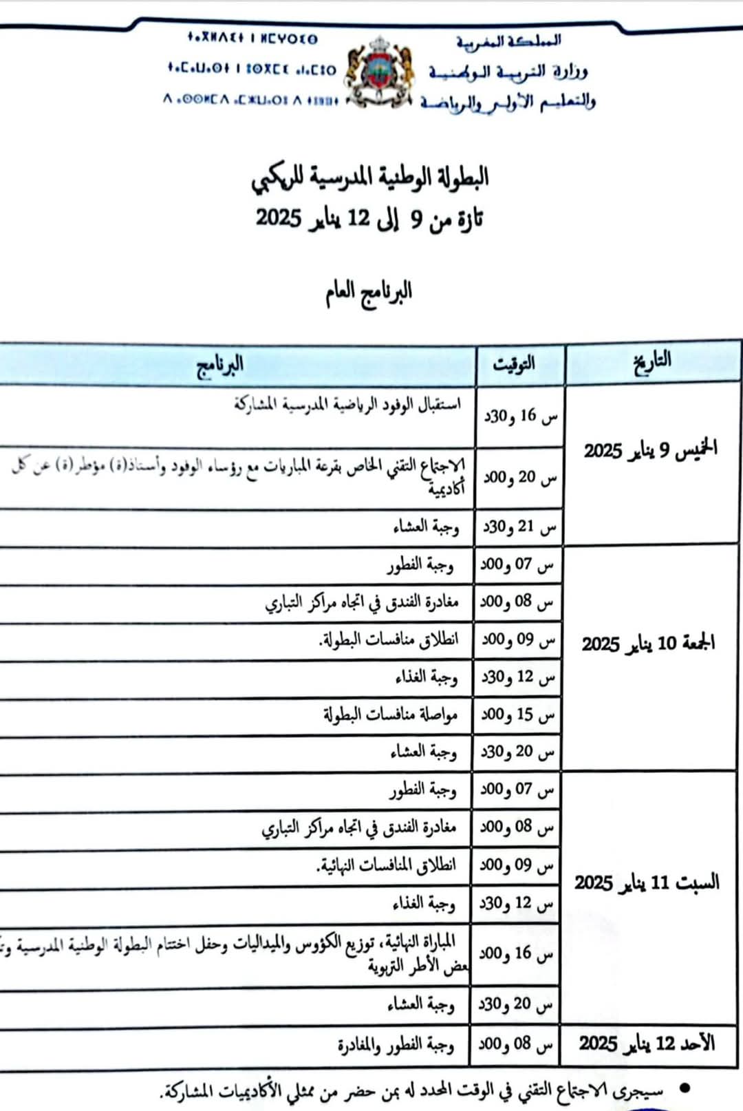 الاجراءات التنظيمية الخاصة بالبطولة الوطنية المدرسية للريكبي التي تحتضنها تازة من 9 إلى 12 يناير 2025
