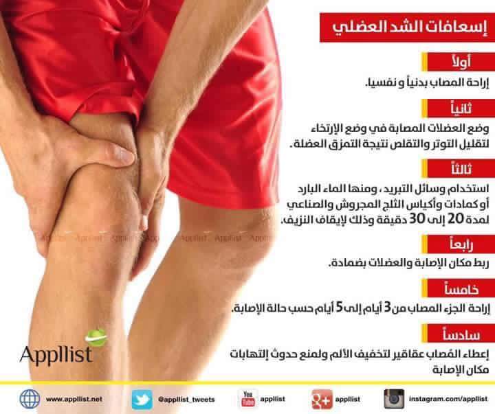 عن آلام العضلات والمفاصل والشد الضعلي والتمزقات العضلية إليكم بعض الصور للاسعافات و النصائح