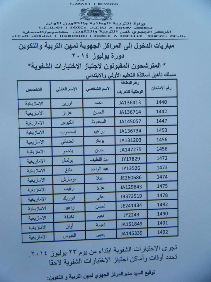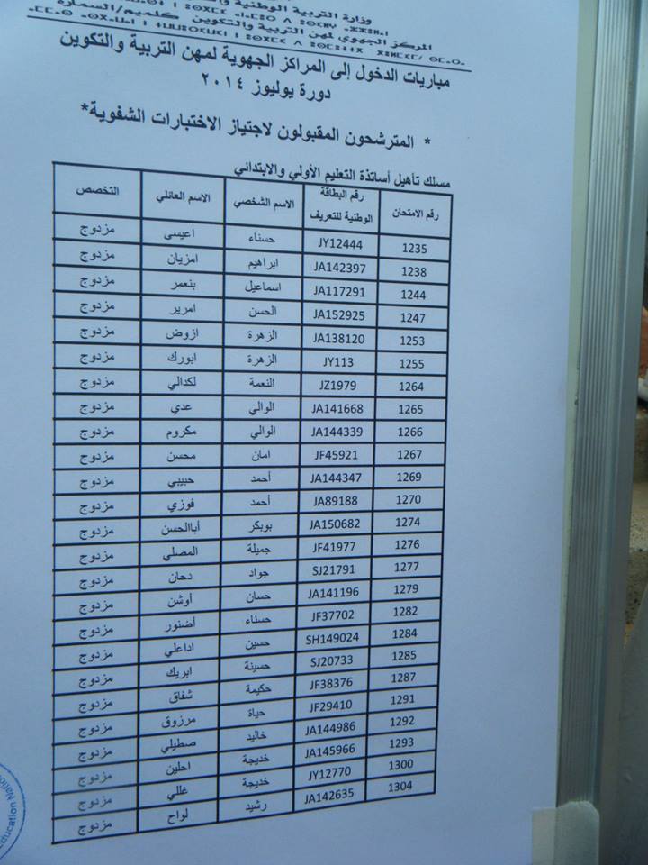 أسماء المترشحين الناجحين لاجتياز الاختبارات الشفوية جهة كلميم السمارة سلك التعليم الإبتدائي