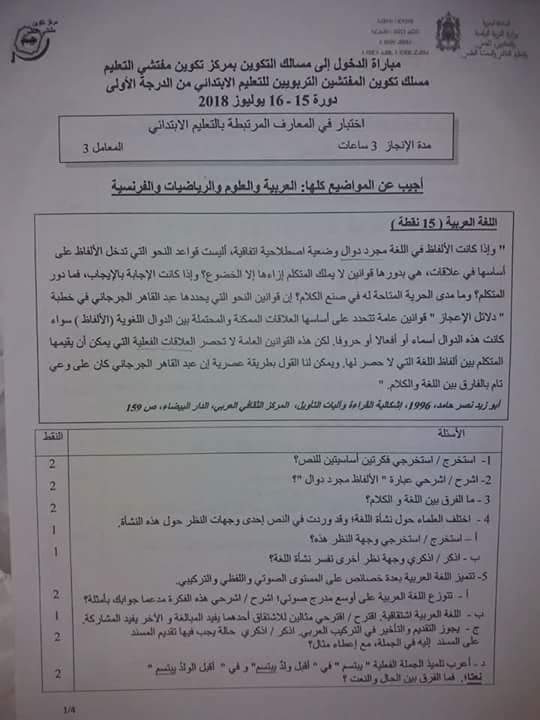 موضوع المعارف المرتبطة بالتعليم الابتدائي الذي اختبر فيه المترشحين لاجتياز مباراة ولوج مركز تكوين مفتشي التعليم اليوم