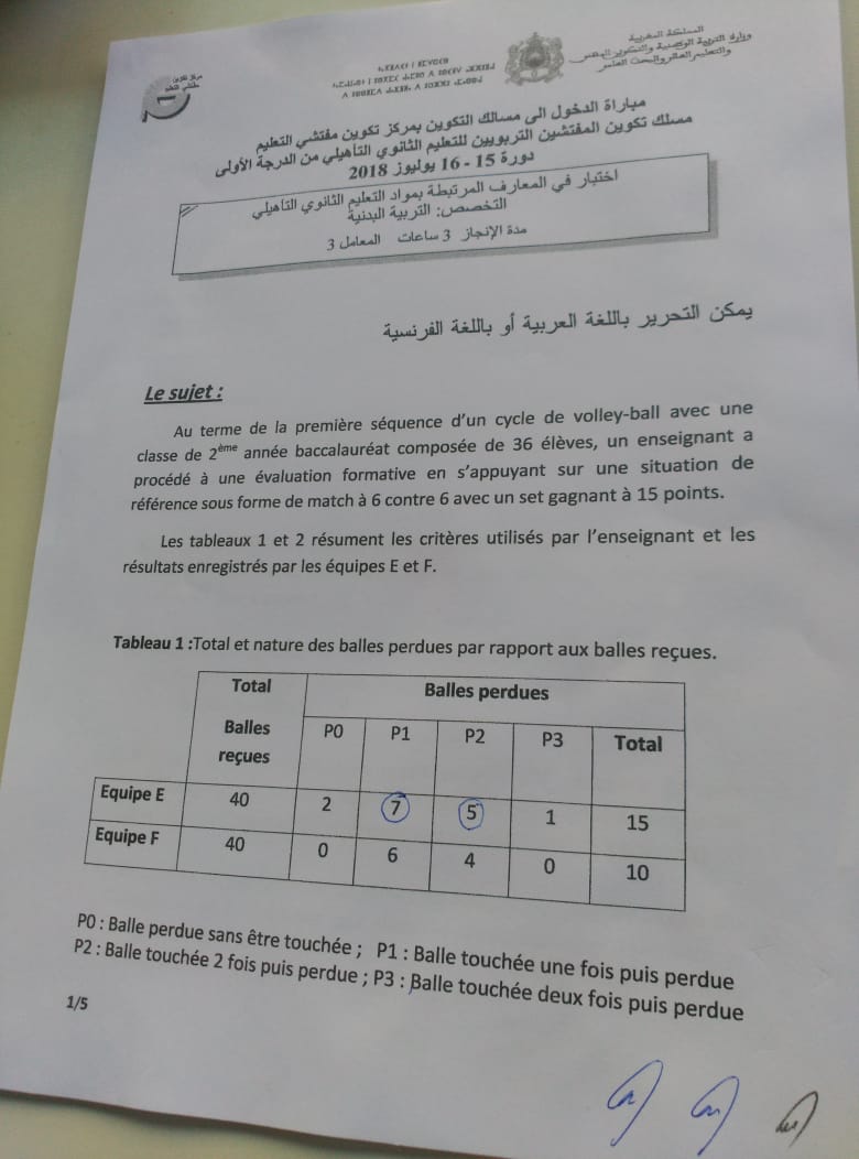 مبارة الدخول الى مسلك التكوين بمركز تكوين المفتشي التعليم مسلك تكوين المفتشين التربوين للتعليم الثانوي التاهيلي دورة15 و16 يوليوز2018 اختبارفي المعارف* و بيداغوجية التخصص التربية البدنية و الرياضة