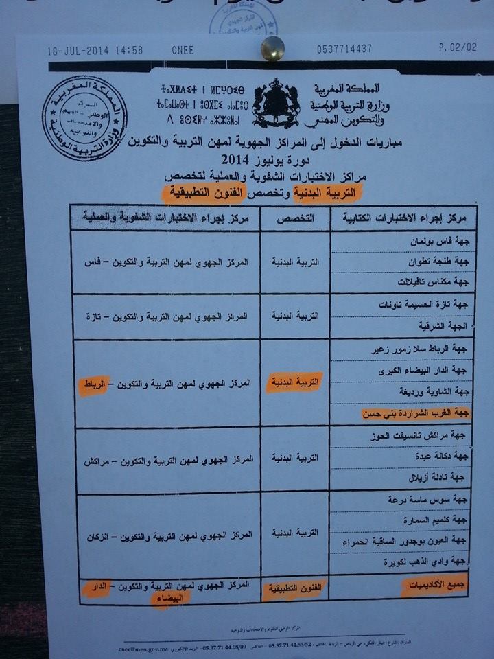 مجالات الاختبارات الكتابية و الشفوية لاجتياز المراكز الجهوية لمهن التربية و التكوين تخصص التربية البدنية و الرياضة دورة 2013