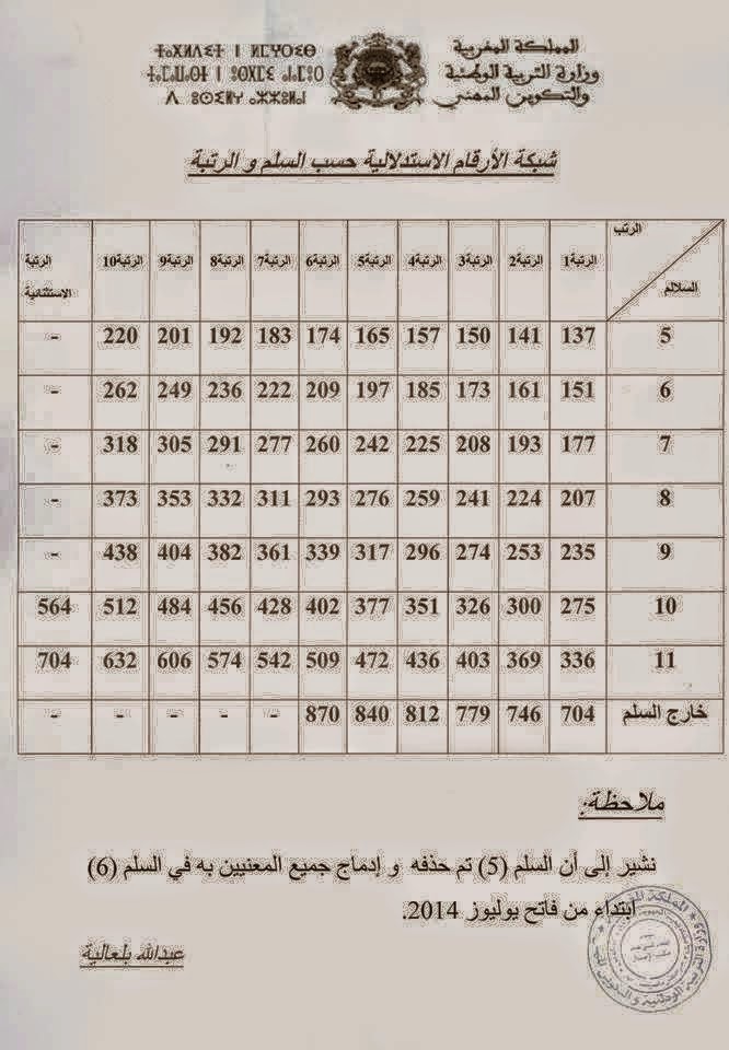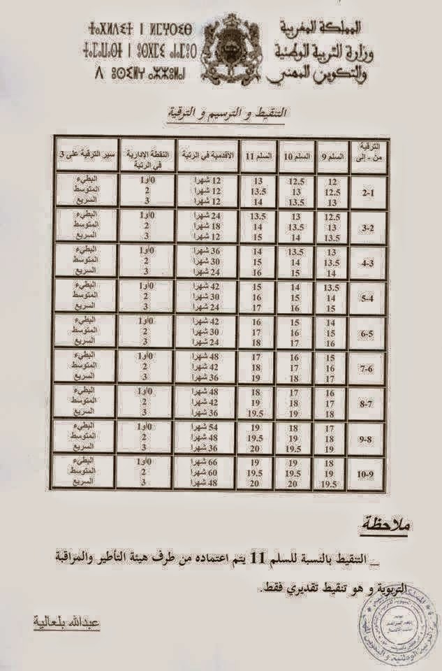 إليكم مقتطف من مذكرة الترقي في الرتبة جداول لعدد سنوات الترقي من رتبة لأخرى ونقطة التفتيش الموازية لكل رتبة