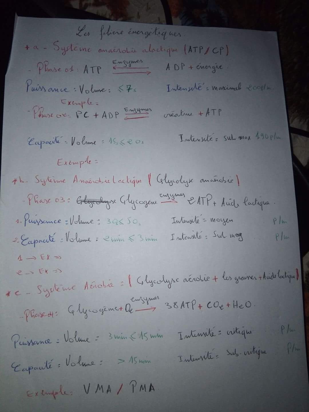 un très bonne résumé pour les filière énergétiques sa va vous aidé bcp pour l'entraînement sportive et peut être même pour le concours aussi