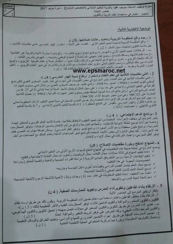 تحميل نماذج الاختبار الكتابي لمباراة التوظيف بالتعاقد في التعليم لسنة 2017 الخاصة بسلك الابتدائي مواضيع الامتحان مرفقة بالتصحبح الرسمي لمباراة التوظيف بالتعاقد