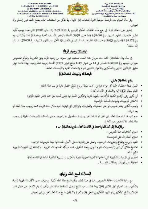 مضامين البنود التي سيتم توقيعها من قبل الناجحين في مباريات التوظيف بموجب عقود دورة يونيو 2017