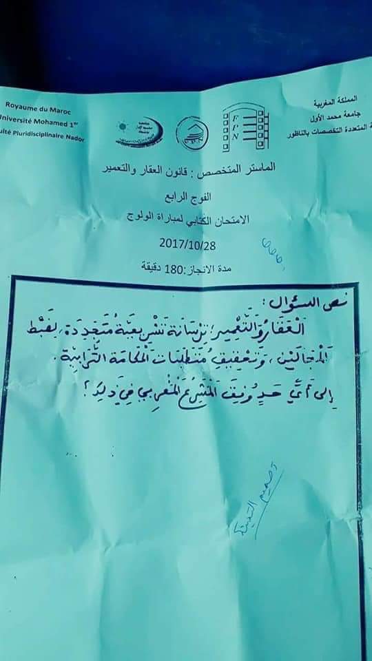 اختبار الشق الكتابي من مباراة ولوج سلك تكوين أطر الإدارة التربوية دورة ماي 2015