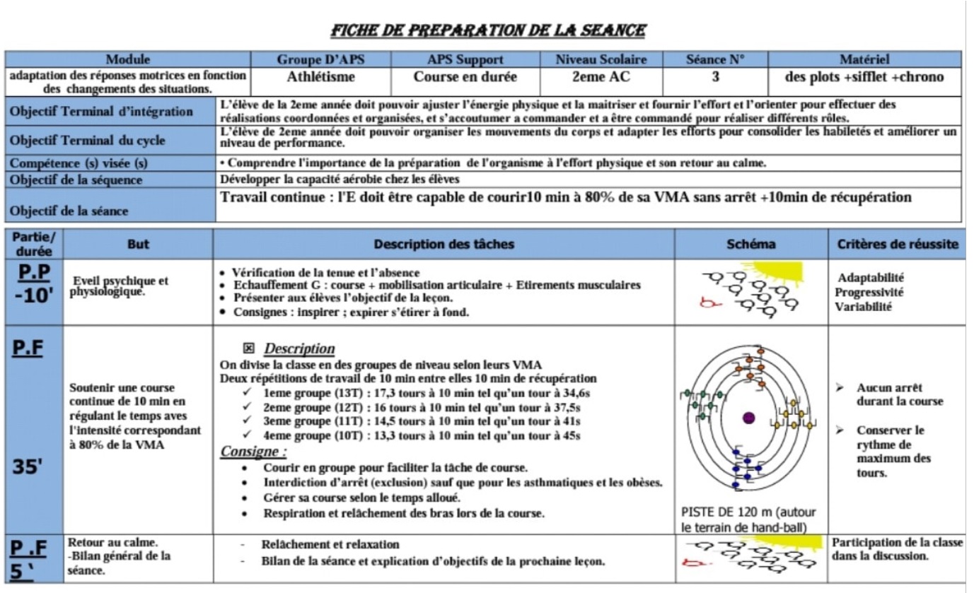 un nouveau cycle de la Course de durée pour les 2ème année collégial selon les orientations pédagogiques Août 2009