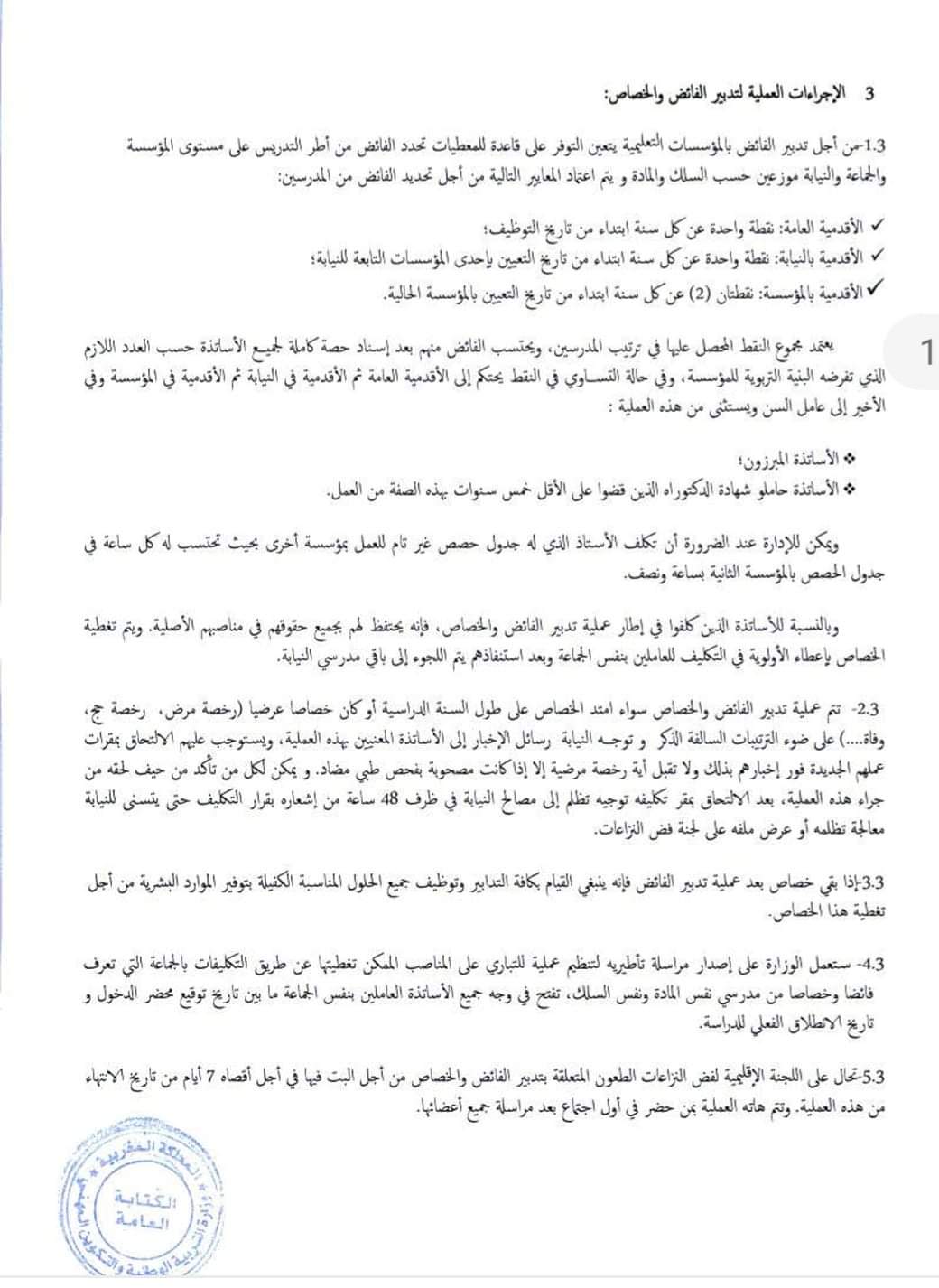 مذكرة تدبير الفائض والخصاص