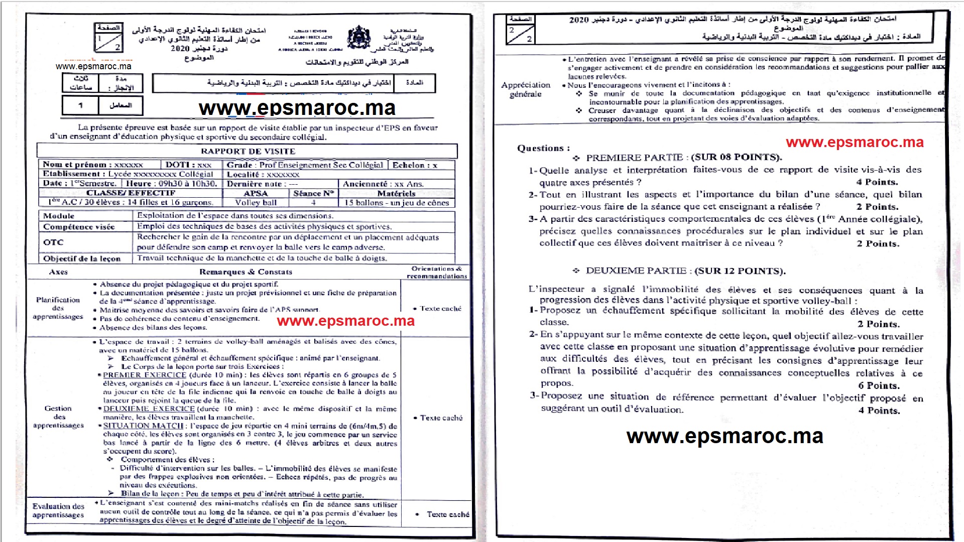 1. افتراضي امتحان الكفاءة المهنية لولوج الدرجة الاولى من اطار استاد التعليم الثانوي الاعدادي اختبار في ديداكتيك مادة التخصص لمادة التربية البدنية والرياضية دورة دجنبر 2020
