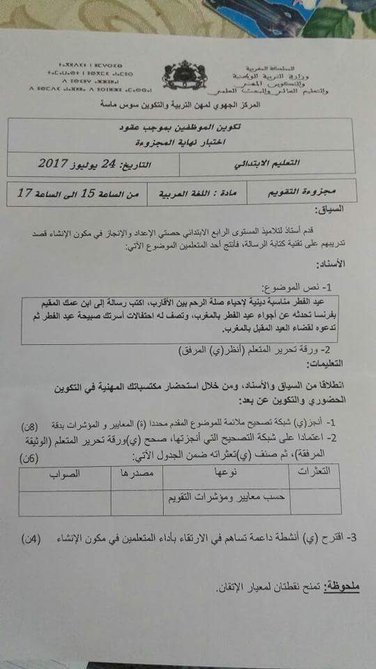 أكاديمية جهة سوس ماسة : امتحان استيفاء مجزوءة التقويم. للاساتدة المتعاقدين فوج 2016.