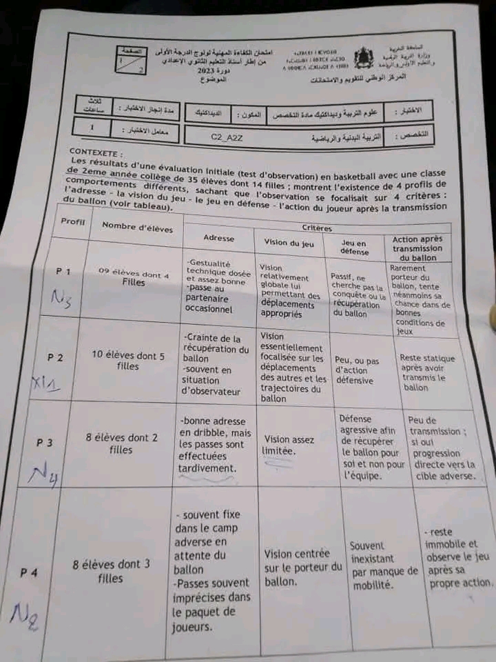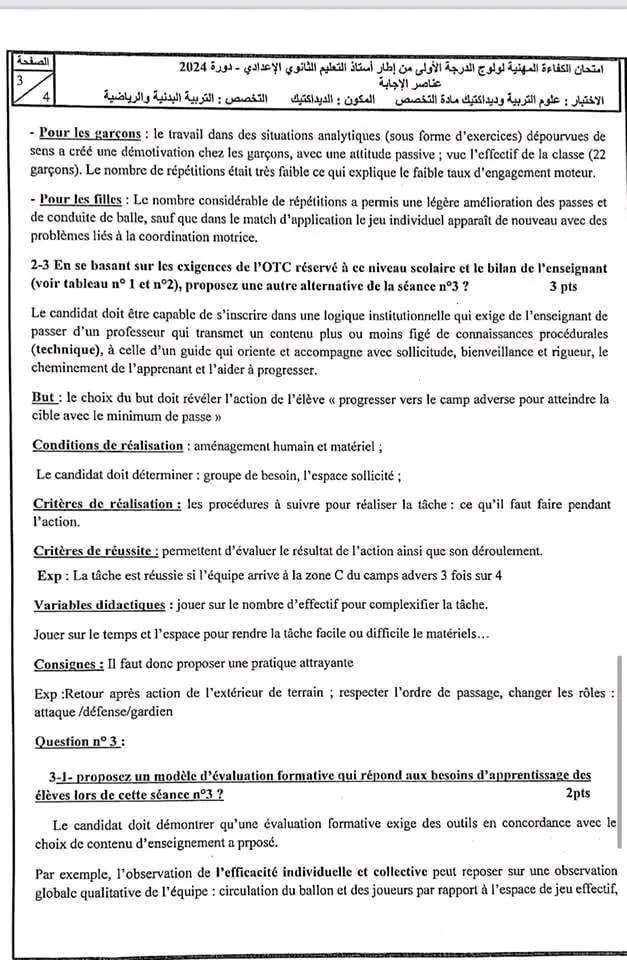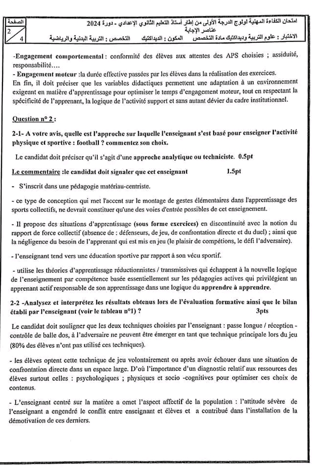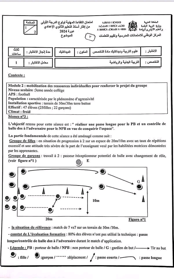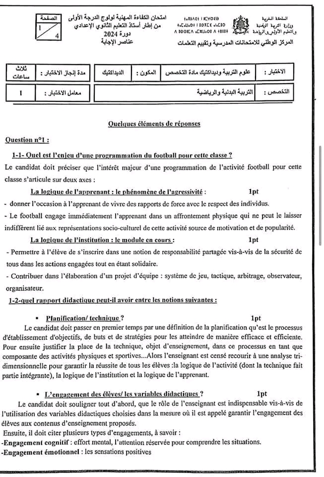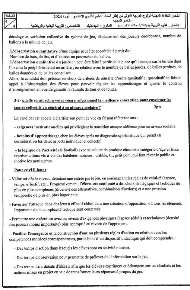 امتحان الكفاءة المهنية ديداكتيك تخصص التربية البدنية والرياضية ثانوي إعدادي سنة 2024
