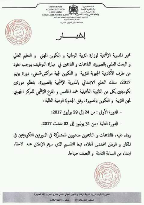 التكوين الحضوري سيتم عبر دورة تكوينية :