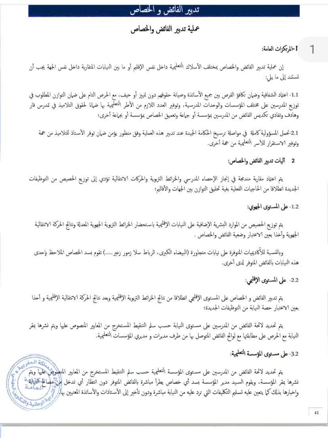 5. المذكرة الاطار الخاصة بعملية تدبير الفائض والخصاص