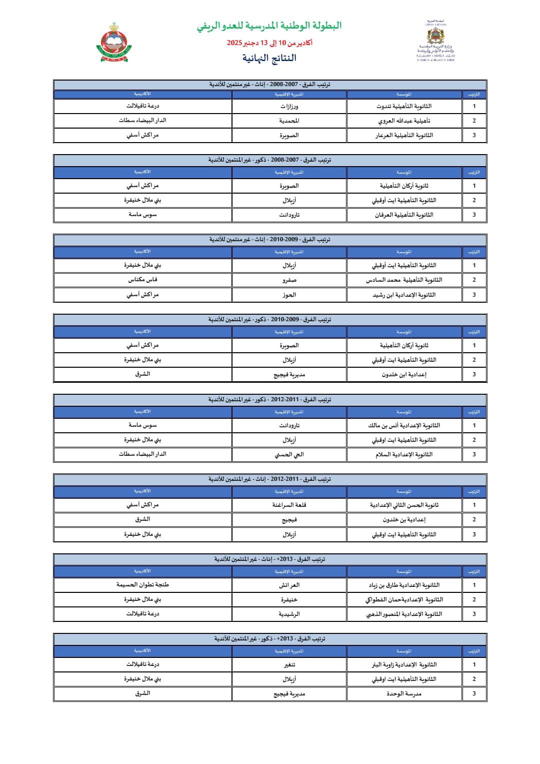 أسدلت مدينة أكادير، يوم الجمعة 12 دجنبر 2025، الستار على فعاليات البطولة الوطنية المدرسية للعدو الريفي برسم الموسم الدراسي 2025-2026