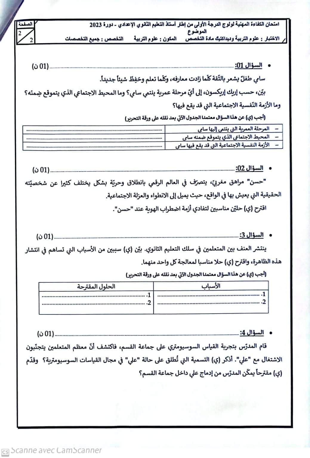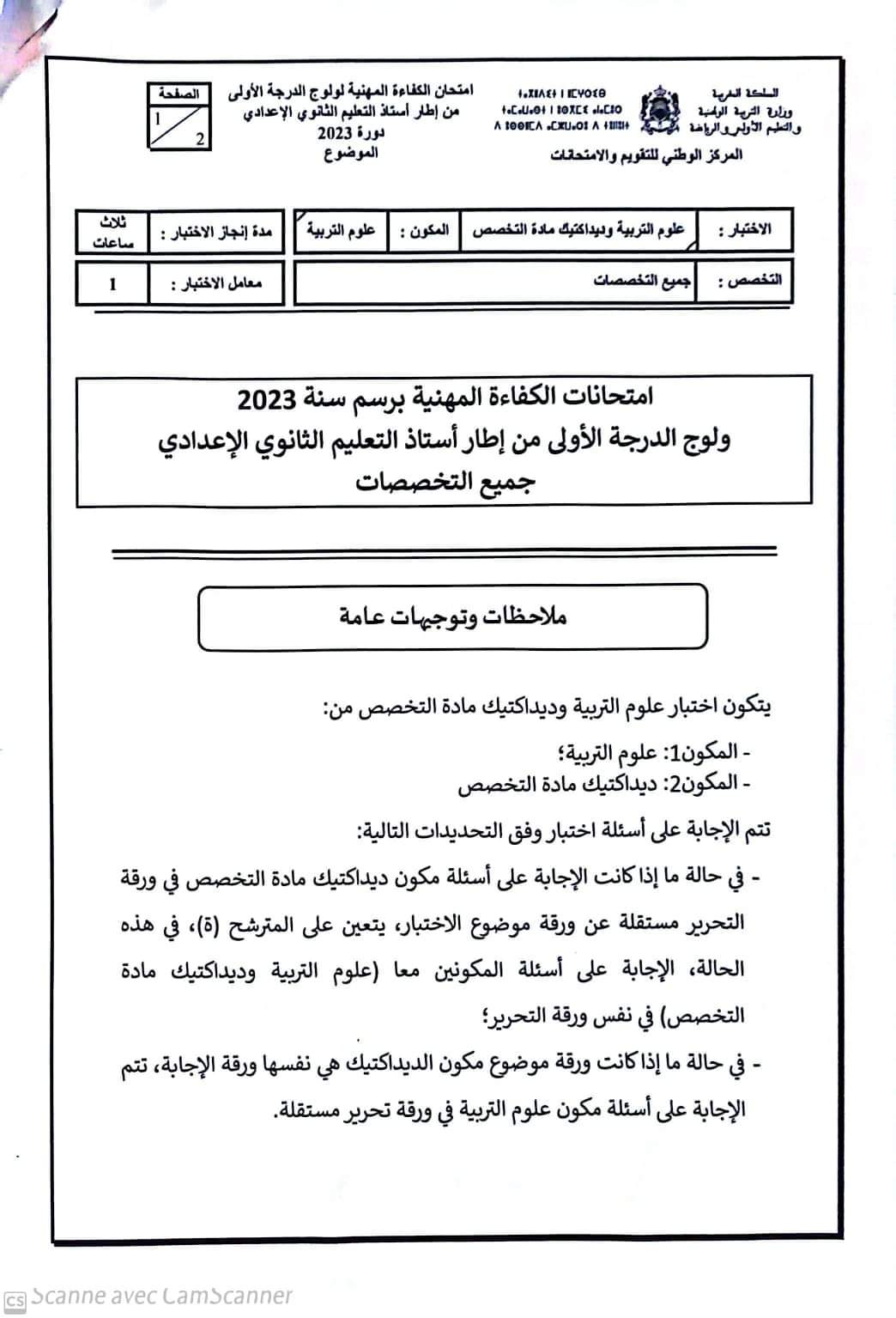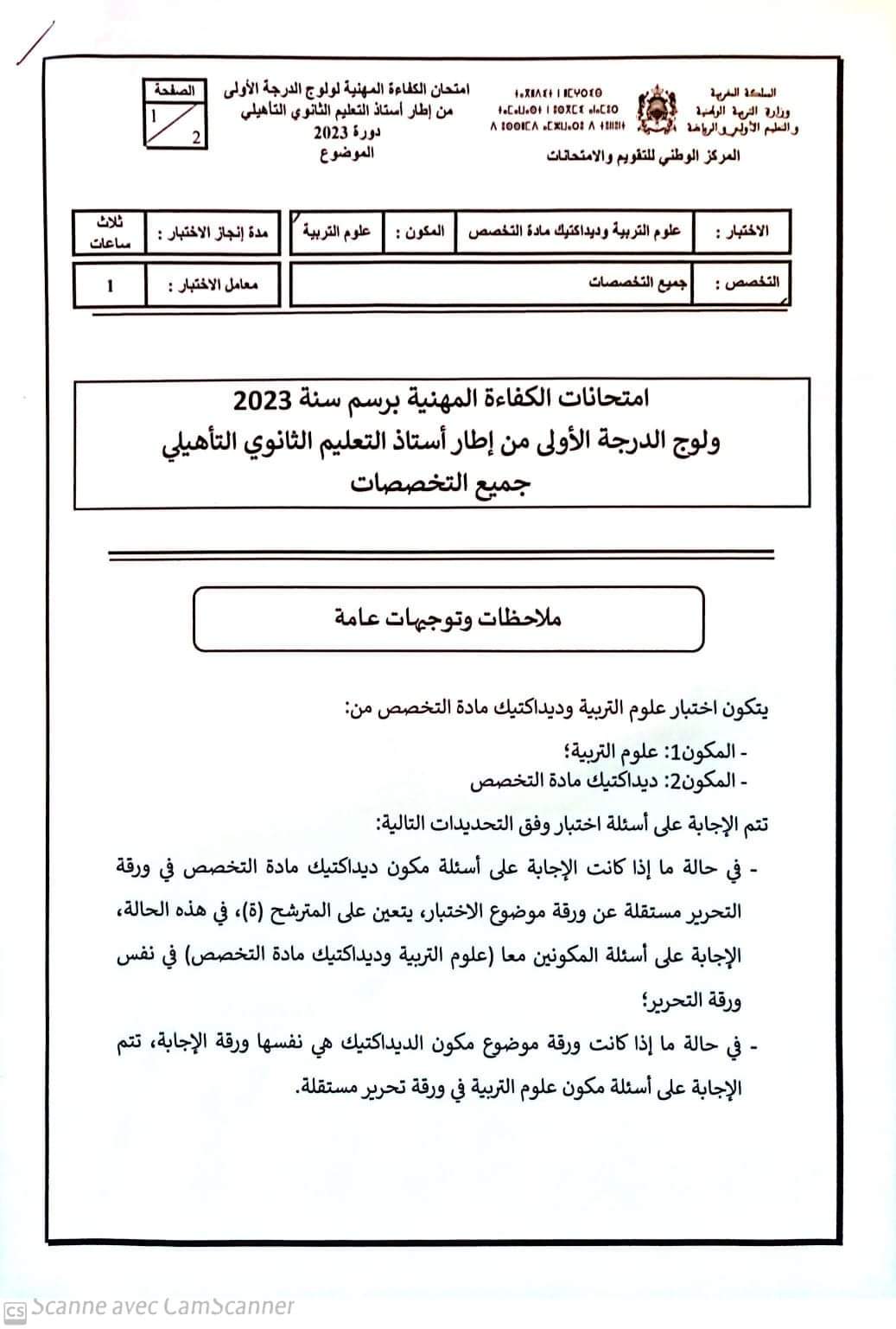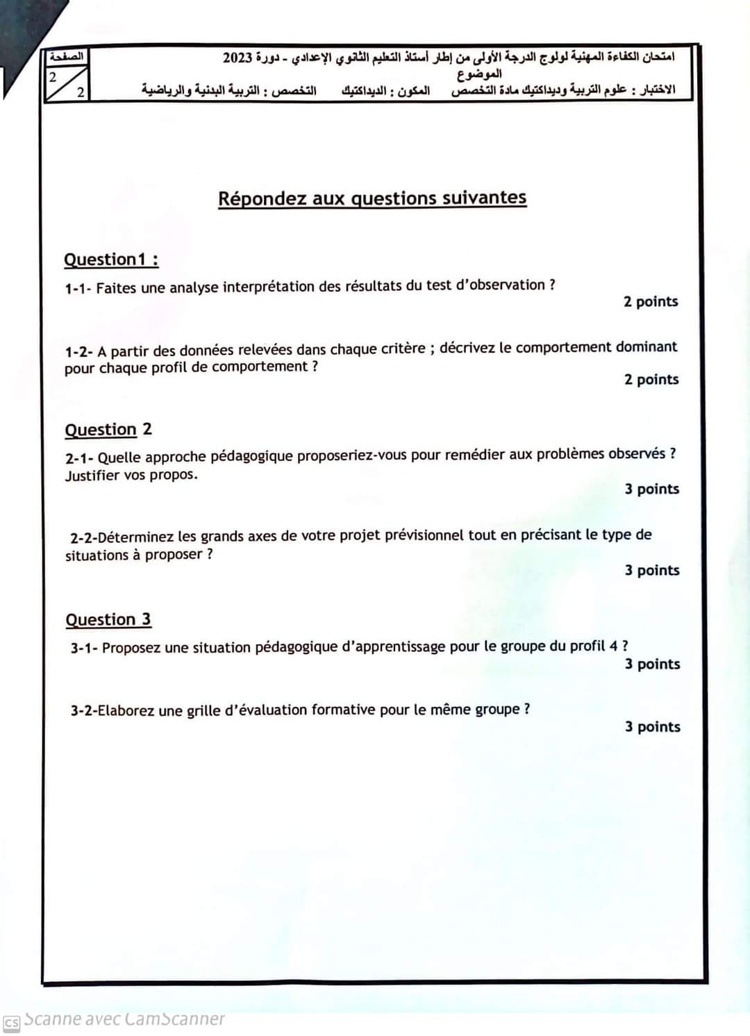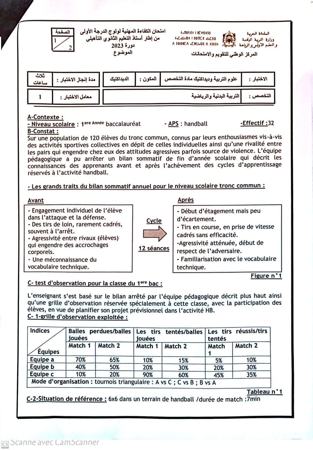 1. Exll مواضيع امتحانات الكفاءة المهنية لمادة التربية البدنية والرياضية بالسلكين الاعدادي و التأهيلي برسم سنة 2023.