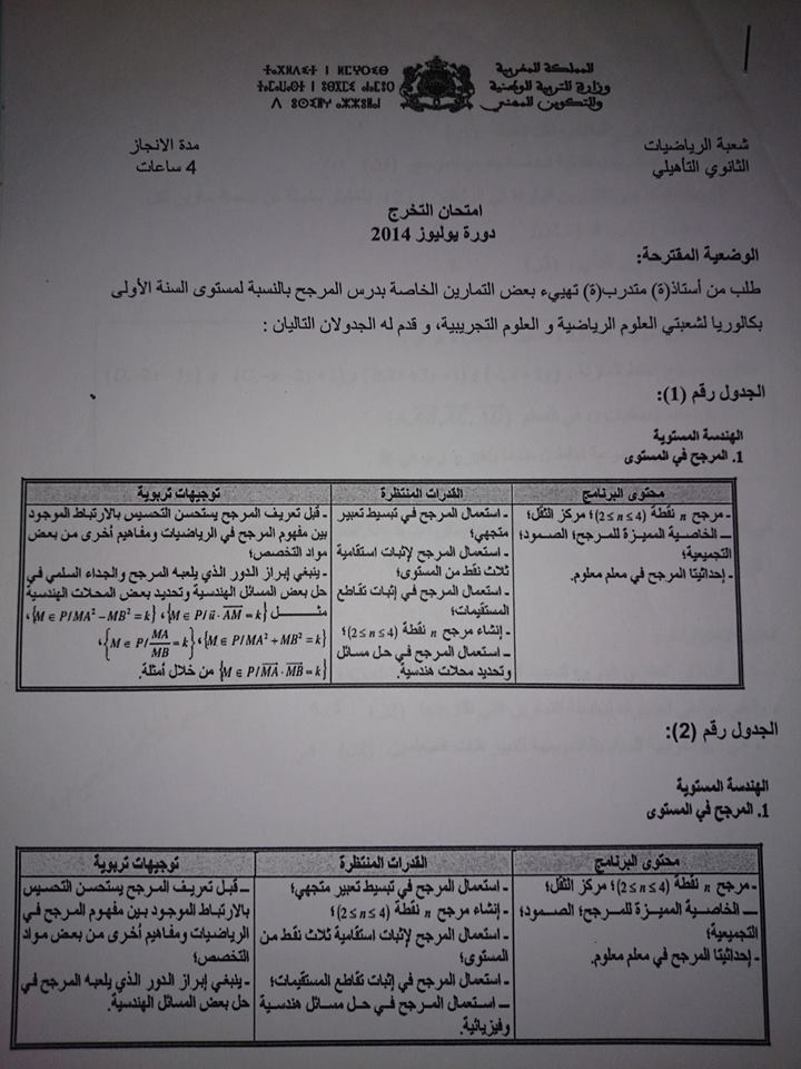 حصريا امتحان التخرج من المراكز الجهوية للتربية والتكوين دورة يوليوز 2014 مادة الرياضيات الثانوي التأهيلي