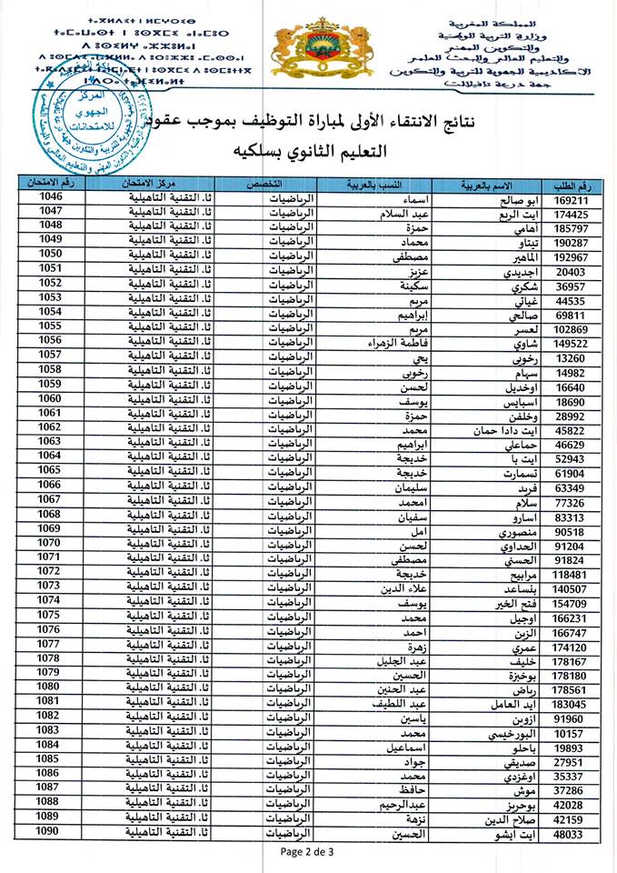 المديرية الإقليمية لورزازات لائحة الانتقاء للتعليم الابتدائي