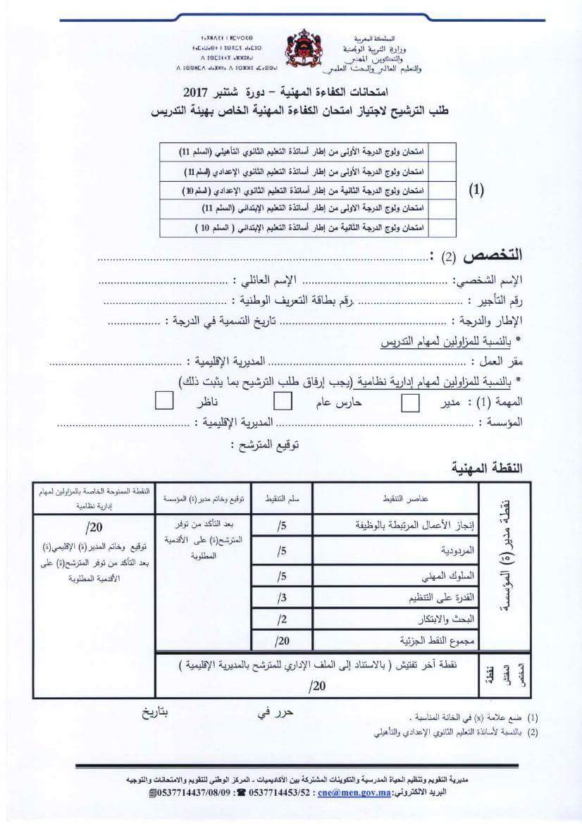 امتحان الكفاءة المهنية لهيئة التدريس دورة شتنبر 2017