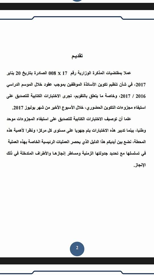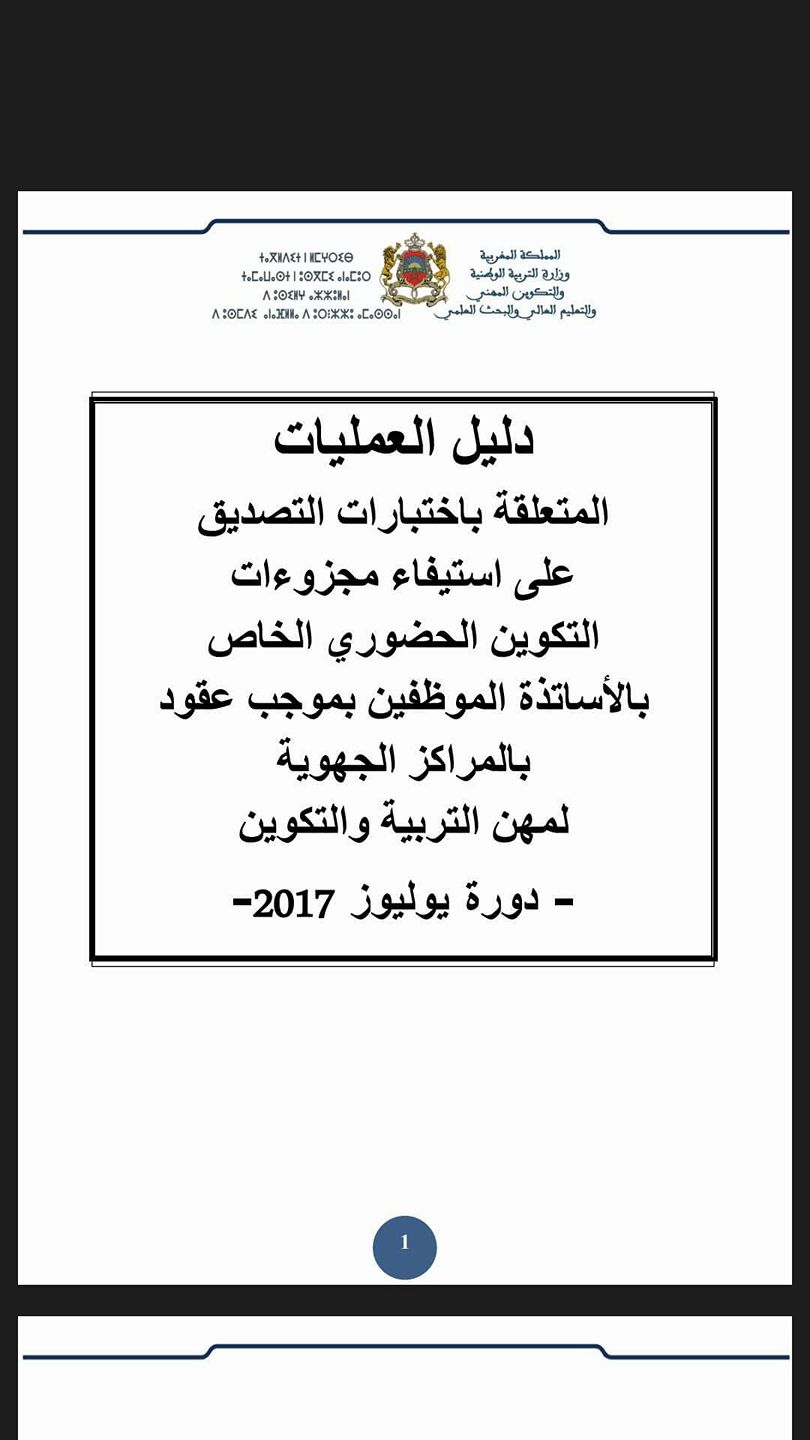 دليل العمليات المتعلعة باختبارات التصديق على استيفاء مجزوءات التكوين الحضوري الخاص بالاساتدة الموظفين بموجب عقود بالمراكزالجهوية لمهن التربية و التكوين دورة يوليوز2017