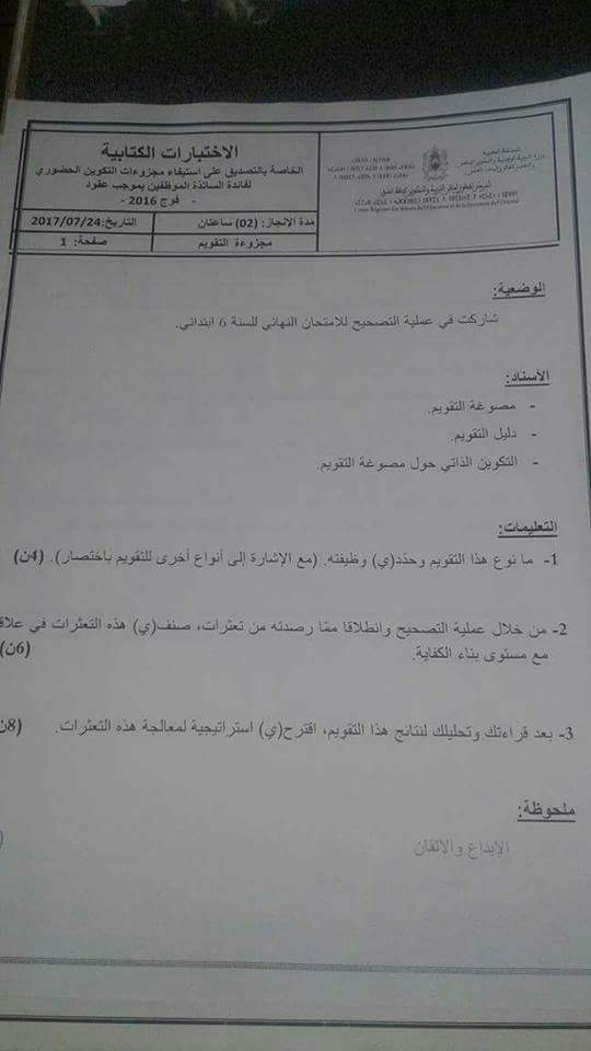 المركز الجهوي لمهن التربية والتكوين لجهة الشرق: إمتحان استيفاء مجزوءة التدبير.والتقويم