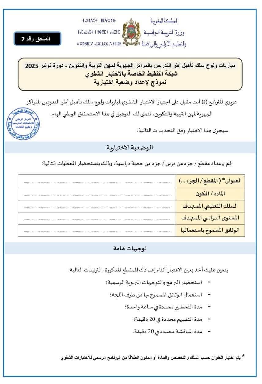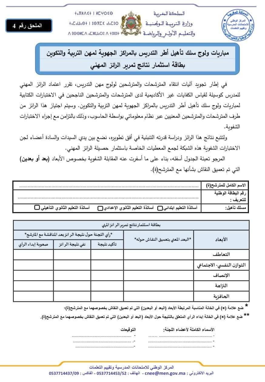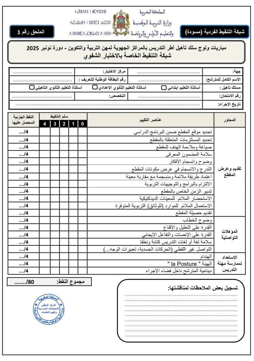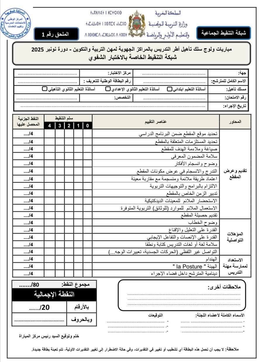 شبكات التنقيط الفردية والجماعية واستثمار نتائج تمرير الرائز المهني الخاصة بالامتحان الشفوي