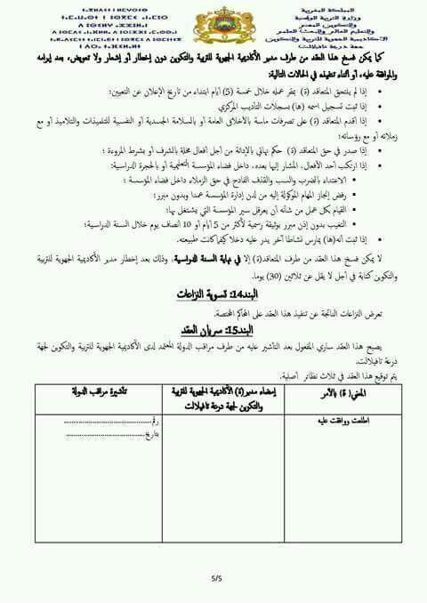 مضامين البنود التي سيتم توقيعها من قبل الناجحين في مباريات التوظيف بموجب عقود دورة يونيو 2017