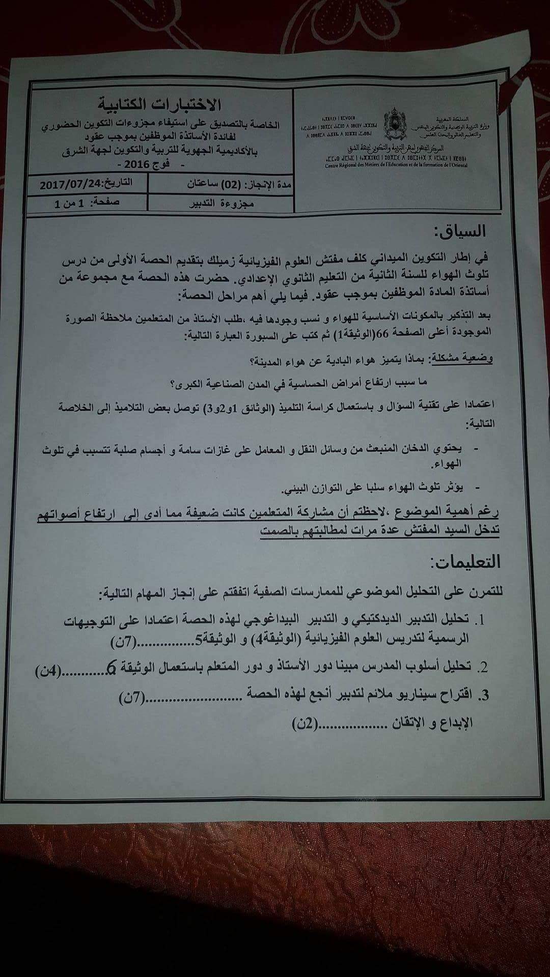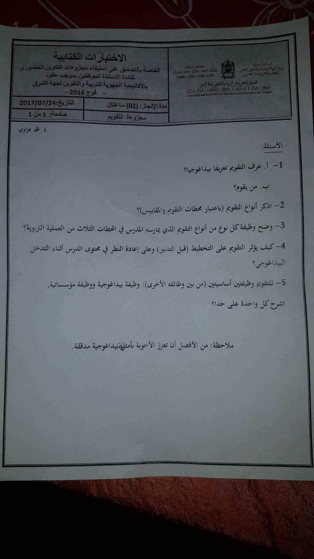الاختبارات الكتابية الخاصة بالتصديق على استيفاء مجزوءات التكوين الحضوري لفائدة الأساتذة الموظفين بموجب عقود فوج 2016