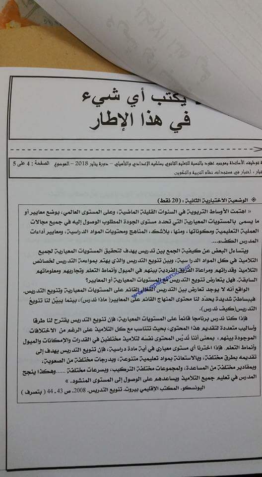1. افتراضي مبارة توظيف الاساتدة بموجب عقود بالنسبة للتعليم الثانوي بسلكيه الاعدادي و التاهيلي دورة يناير 2018 اختبار في مستجدات التربية والتكوين