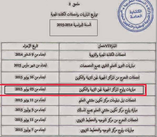 إليكم تواريخ المباريات وإمتحانات الكفاءة التربوية برسم السنة الدراسية 2014-2015