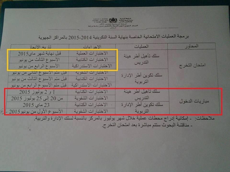 برمجة العمليات الامتحانية الخاصة بنهاية السنة التكوينية 2014.2015 بالمراكز الجهوية للتربية و التكوين