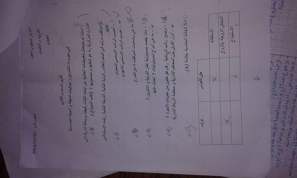 فروض المراقبة المستمرة -الحياة المدرسية الاستاذ السممي- المركز الجهوي للتربية و التكوين لجهة العيون بوجدورالساقية الحمراء
