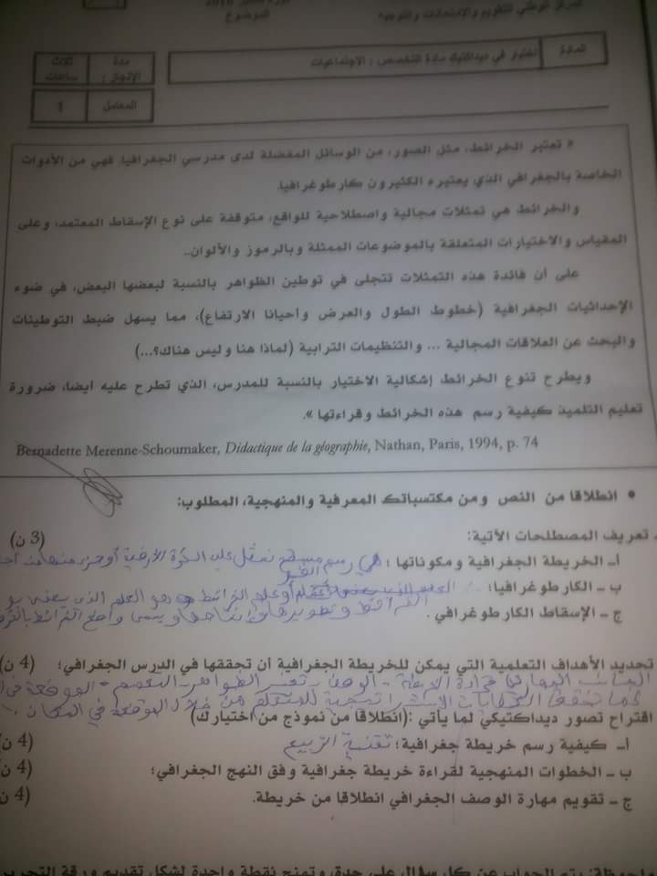 1. افتراضي مواضيع الامتحان المهني لولوج الدرجة الاولى للسلك الاعدادي و الثانوي التاهيلي- التاريخ و الجغرافية دورة شتنبر 2016