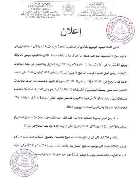 إتاحة فرصة الترشيح لاجتياز مباريات التوظيف بالتعاقد للمتوفرين فقط على شهادة الإعتراف بالنجاح