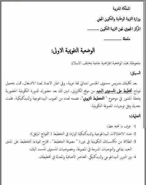 2. نماذج وضعيات للاستئناس فقط مع مقترح التصحيح للتقويم و التخطيط و التدبير
