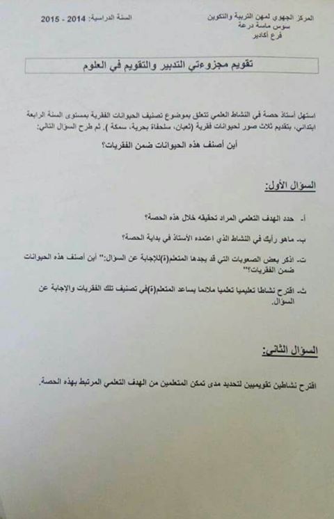 4. المركز الجهوي لمهن التربية والتكوين لجهة الشرق: إمتحان استيفاء مجزوءة التدبير.والتقويم