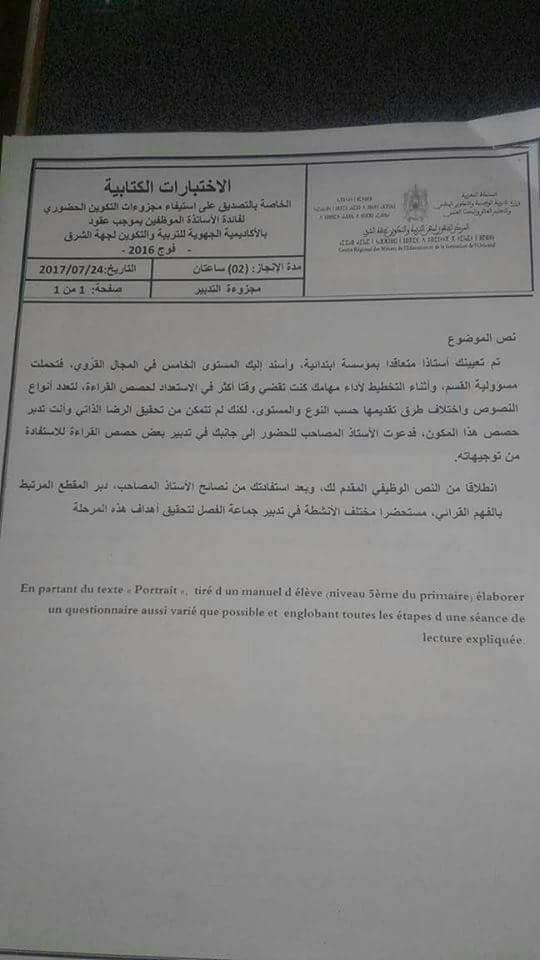 المركز الجهوي لمهن التربية والتكوين لجهة الشرق: إمتحان استيفاء مجزوءة التدبير.والتقويم
