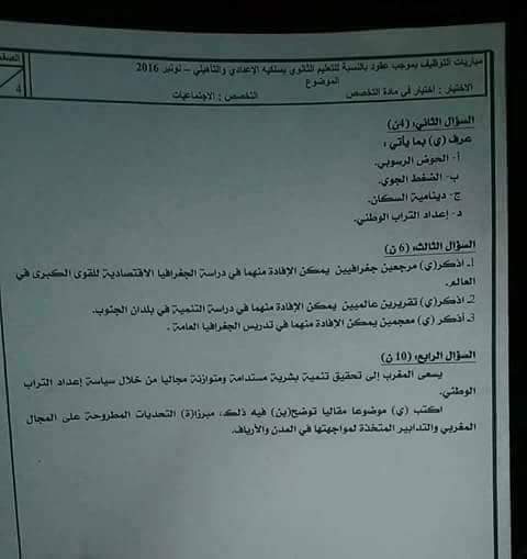 امتحان وتصحيح مباراة توظيف الاساتدة بموجب عقود بالنسبة للتعليم الثانوي الإعدادي و التاهيلي دورة يونيو 2017اختبار في مادة التخصص و ديداكتيك مادة التخصص مادة الاجتماعيات
