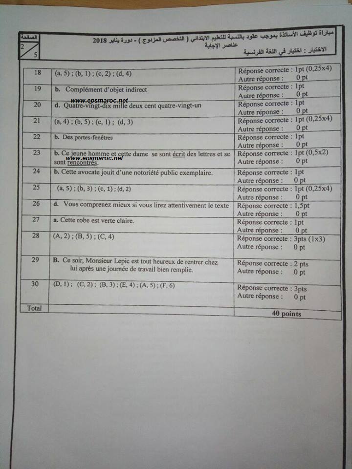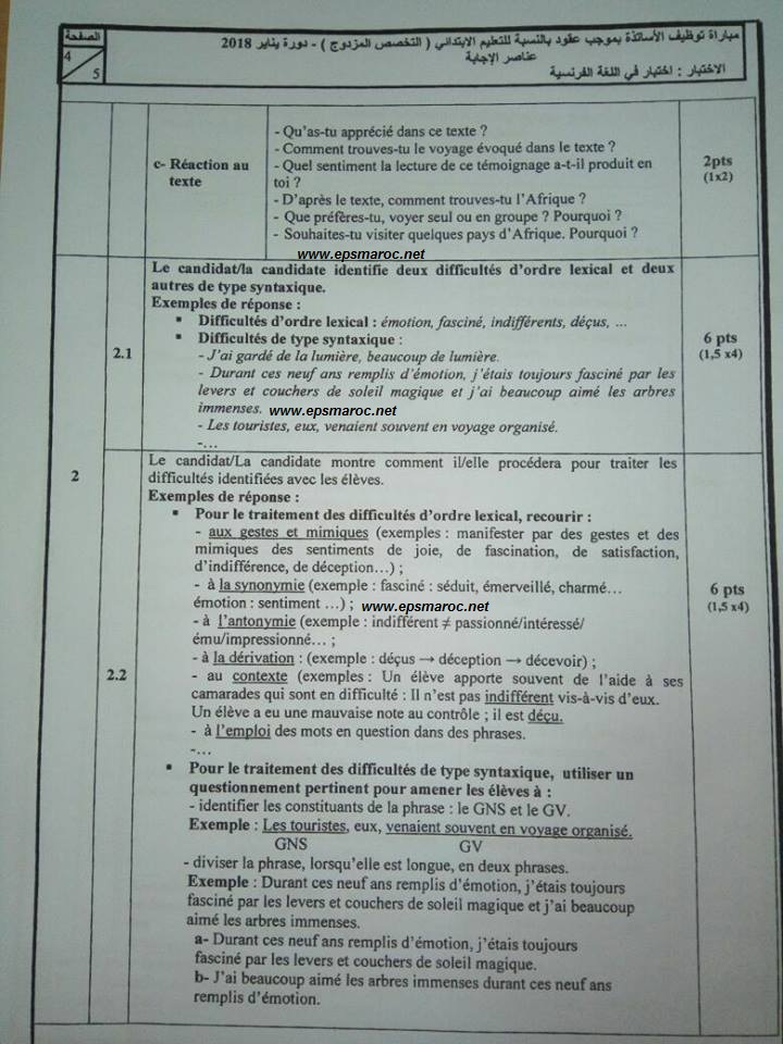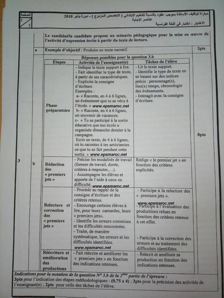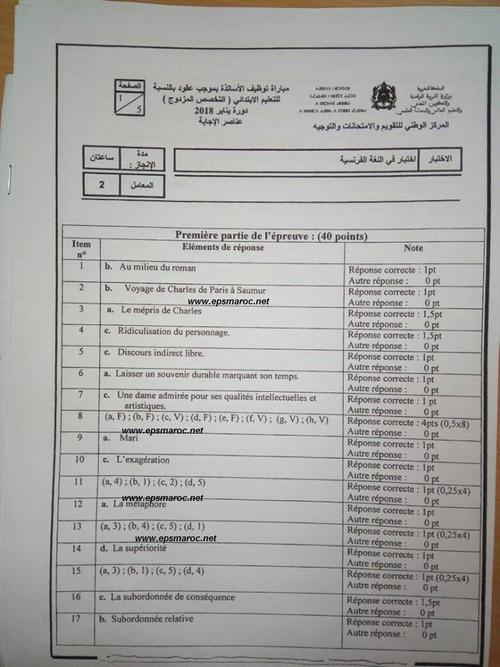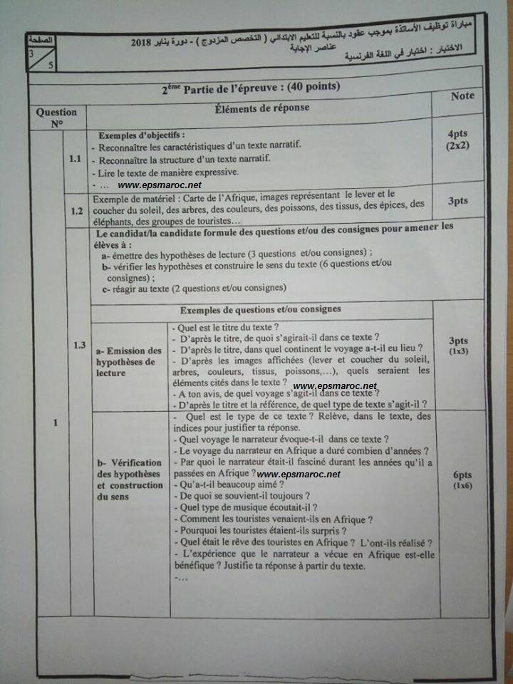 عناصر الاجابة لمباراة توظيف الاساتدة بموجب عقود بالنسبة للتعليم الابتداءي دورة يناير 2018اختبار في مادة اللغة الفرنسية